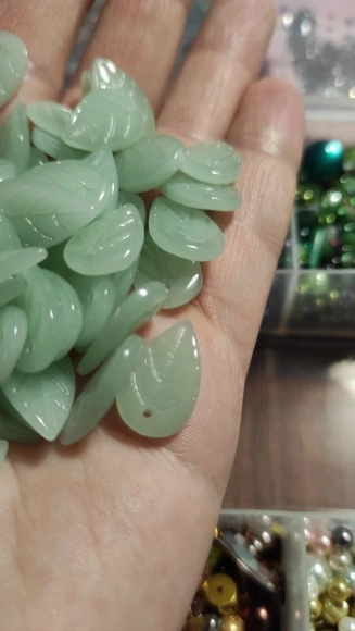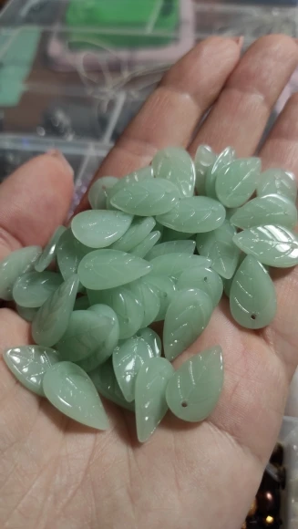 50 pièces exactement. Toutes les perles sont arrivées intactes. Elle font entre 17 et 18mm sur 11mm environ. Elles sont épaisses d'à peu près 2mm. Elles peuvent être en verre. Pour moi, ici, avec ce produit, ça semble être le cas. C'est un produit de qualité. Certainement. Donc, ça vaut son prix. Et donc, de temps en temps, le plaisir de se faire plaisir ! Livraison bien.