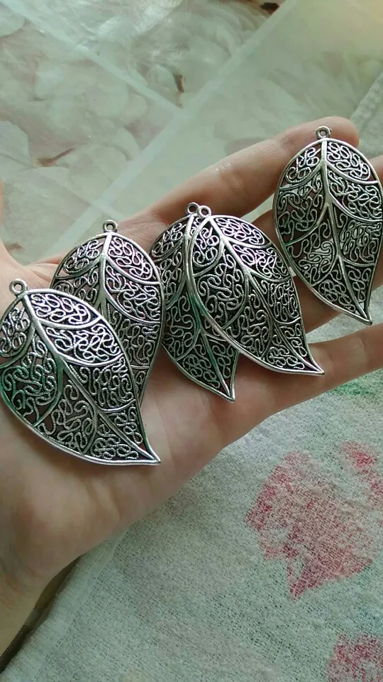 57x31mm 5 pièces Antique plaqué argent et Bronze plaqué feuille Style fait main pendentif à breloques: bricolage pour bracelet collier-