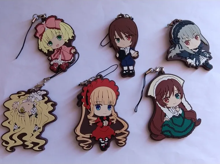 6 pièces/lot Original japonais anime figure Rozen jeune fille Shin ku caoutchouc Silicone doux odeur téléphone mobile breloques porte-clés sangle G330