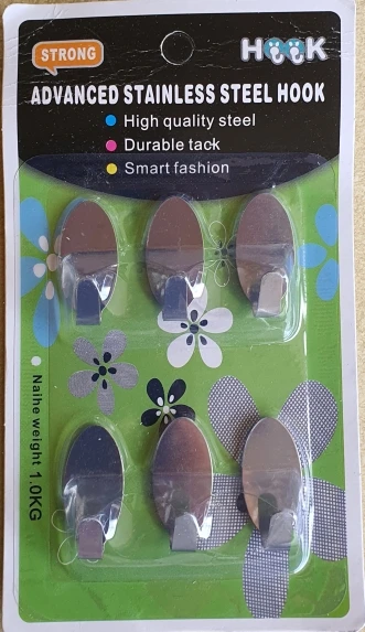 6x Salle De Bain Cuisine Crochets En Acier Inoxydable Suspendus Adhésif Crochets Bâton Sur Le Mur de la Porte Des Vêtements Serviette À Main Titulaire Mur Hanger