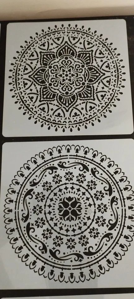 9 pièces/paquet 15*15cm Mandala géométrie ronde bricolage pochoirs de stratification peinture Scrapbook coloriage gaufrage Album modèle décoratif