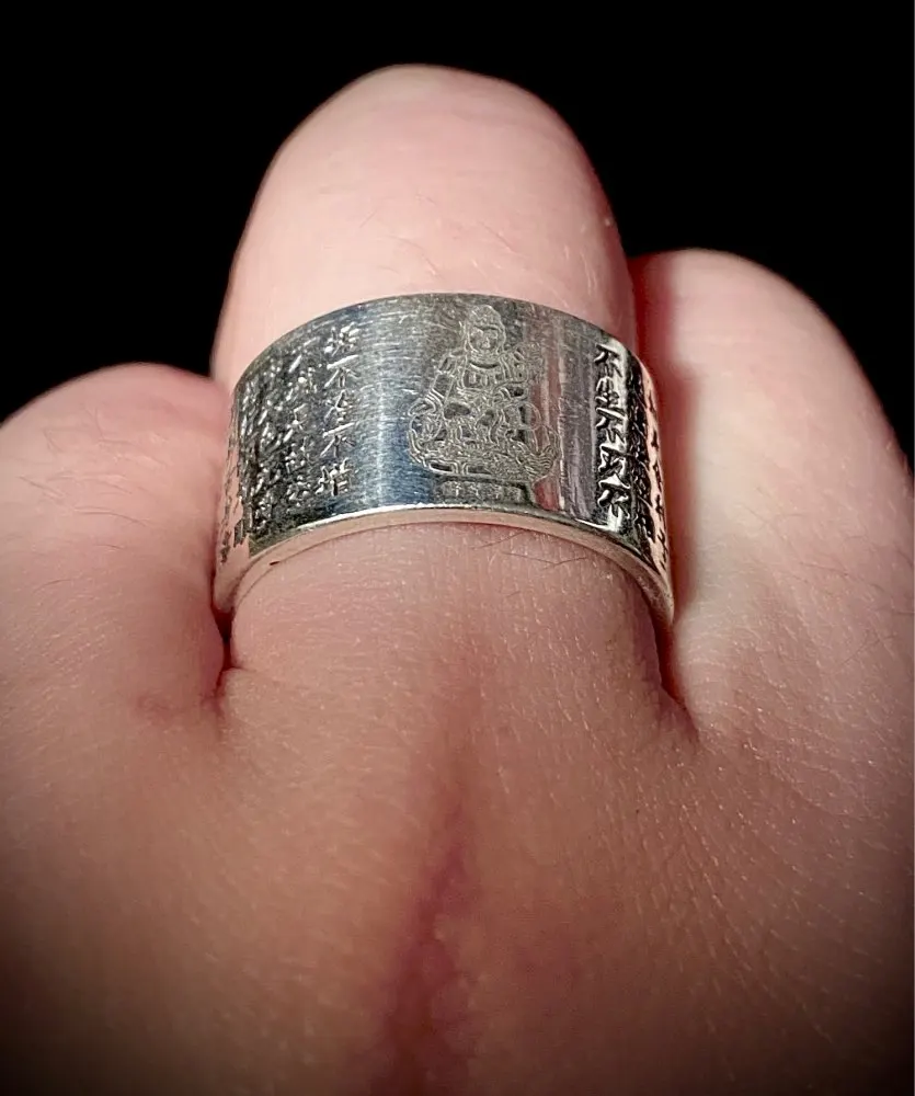 999 argent Sterling Sanskrit bouddhiste Mantra bague Match 12 zodiaque gravé coeur Sutra anneaux pour les amoureux Couple Type d'ouverture