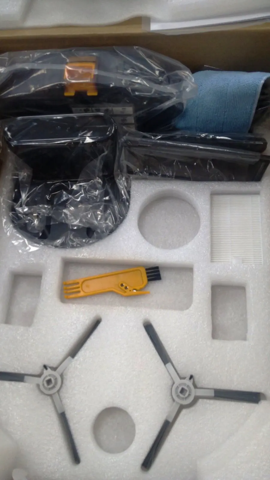 Livraison très rapide, double emballage. Très beau robot, moderne brillant, robuste, bonne qualité. Aspiration puissante. Nettoyage très satisfaisant, il monte bien sur les tapis, passe partout, fait bien les angles et bordures, les cheveux et poils de chien s'enroulent sur la brosse sans bloquer. L'appli ne fonctionne pas sur mon mobile en France, mais la télécommande permet quelques fonctions spéciales. Je recommande.