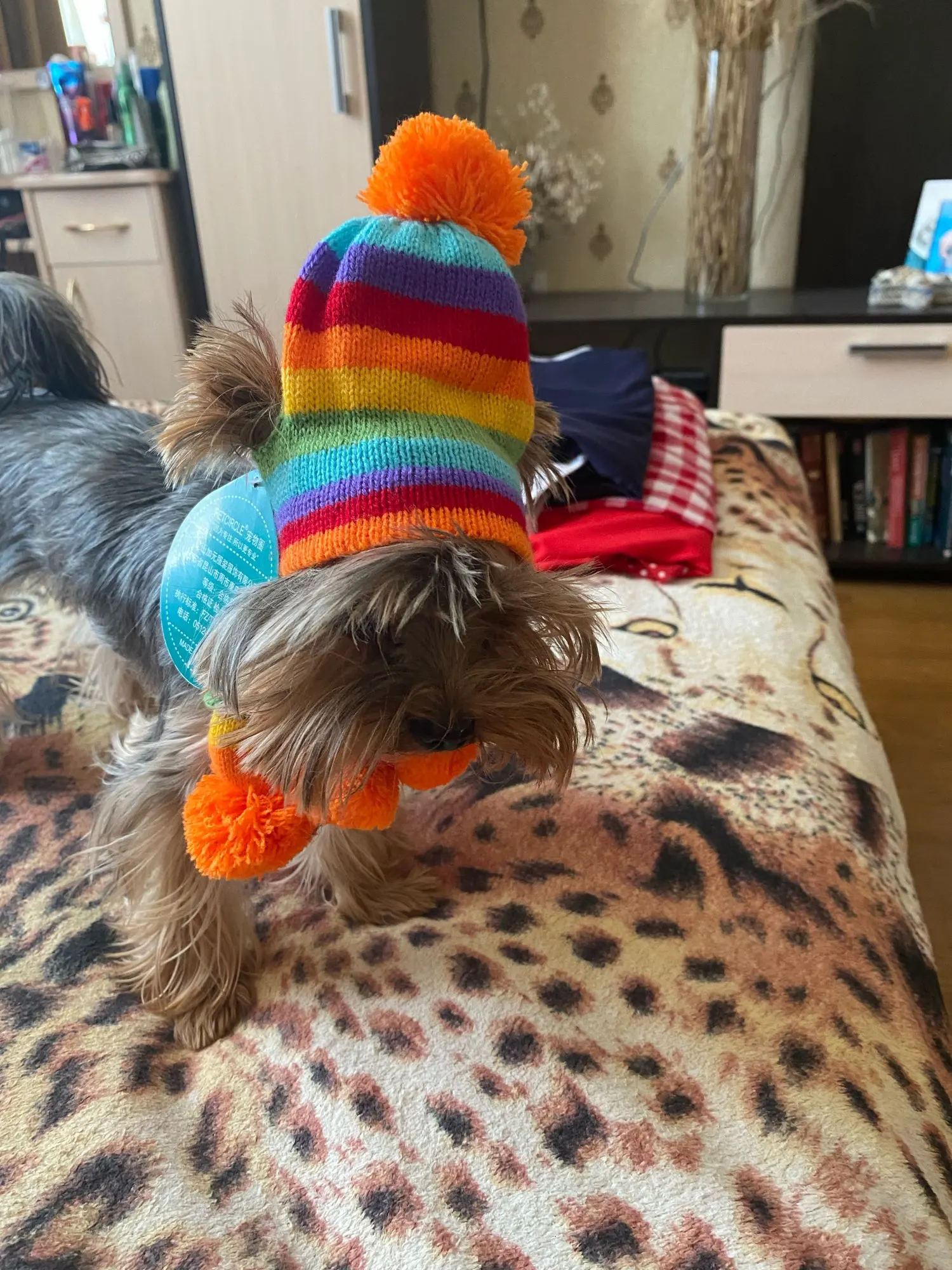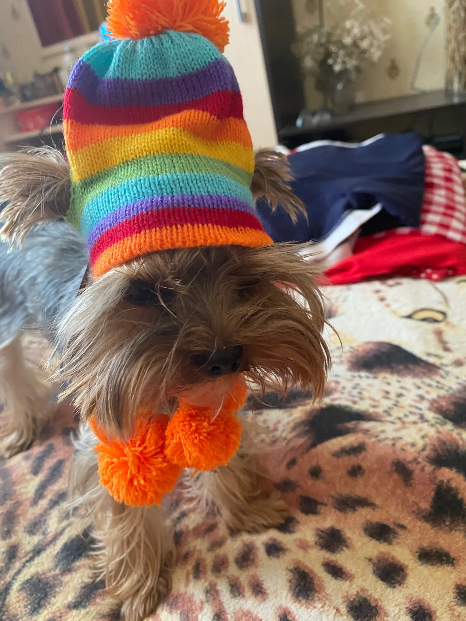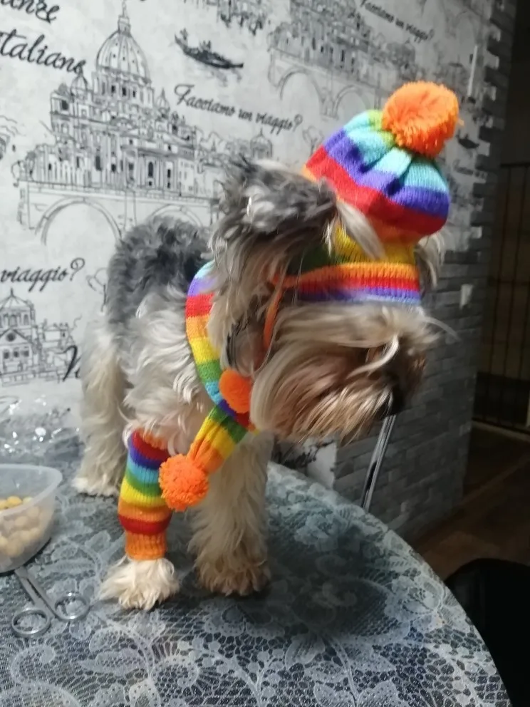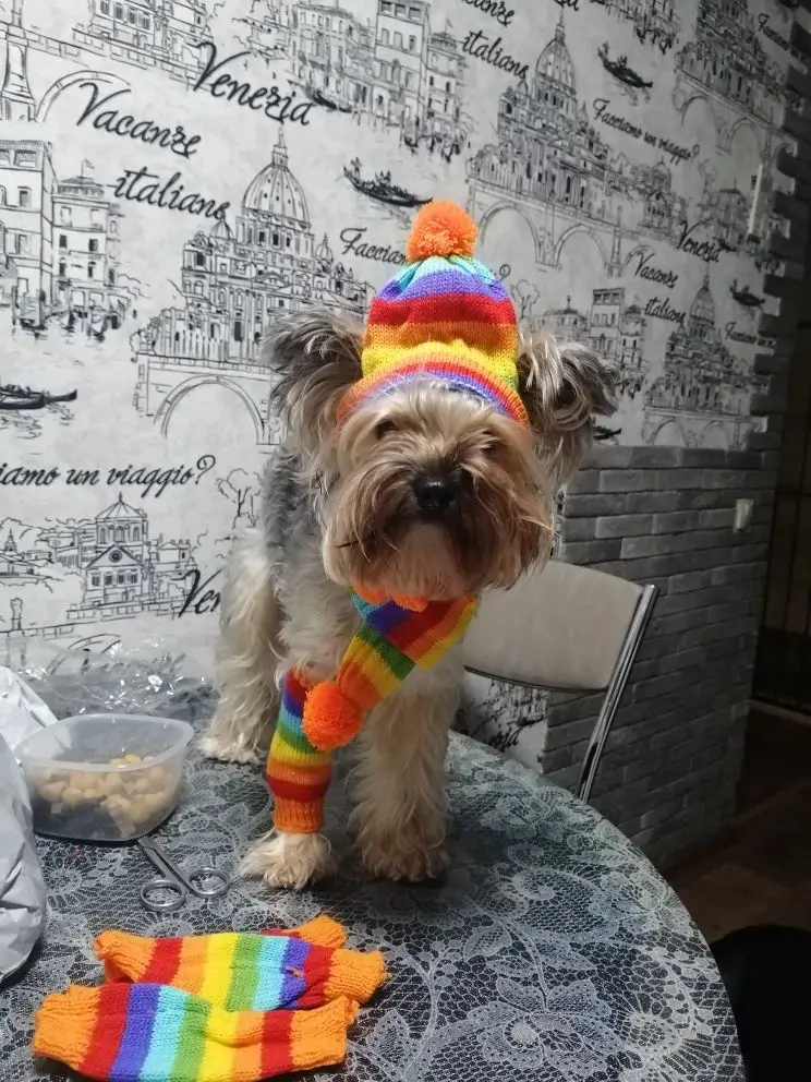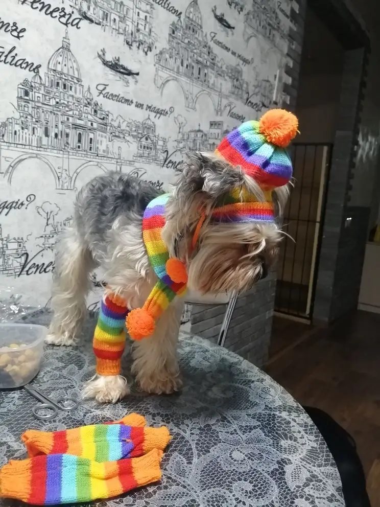 Accessoires d'hiver pour chiots, chapeaux tricotés à rayures, écharpe, chaussettes, petits, grands animaux, Yorkshire, Chihuahua, produits pour chats