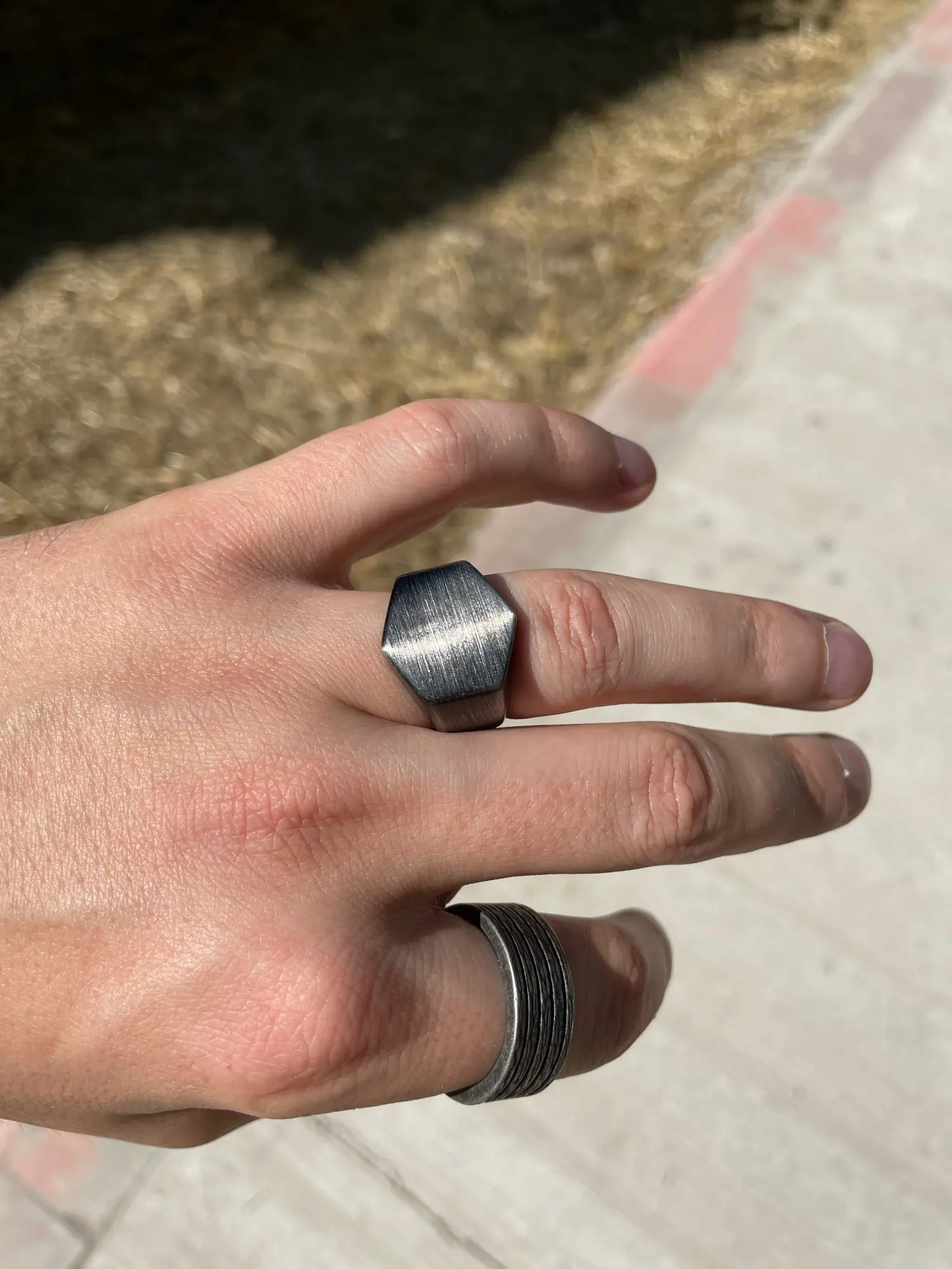 Acier soldat de haute polonais hexagone anneau de mode en acier inoxydable angle unqiue biker bijoux pour hommes et femmes