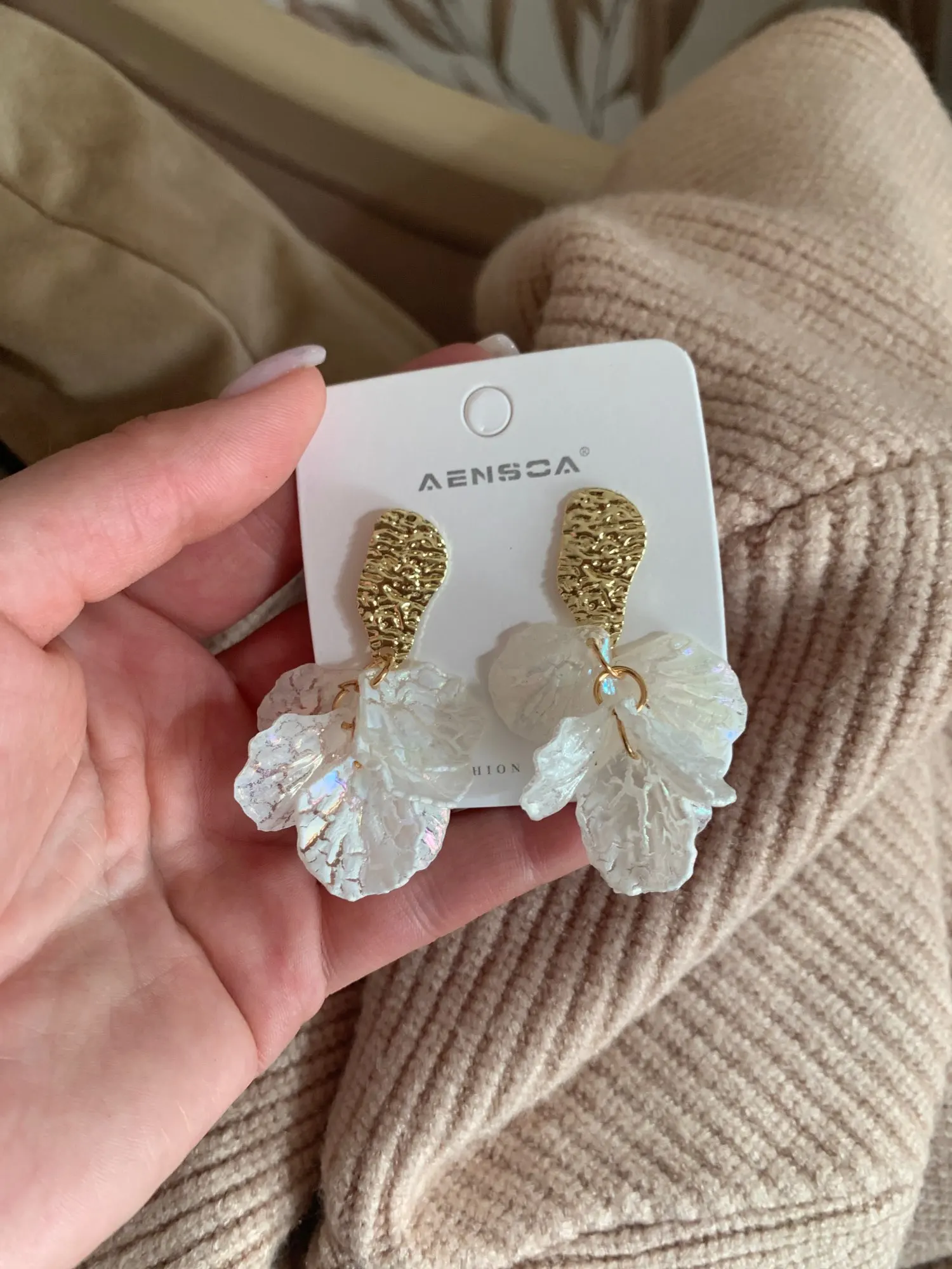 AENSOA coréen blanc coquille fissure fleur pétale goutte boucles d'oreilles pour les femmes 2022 nouveau mignon doux irrégulier boucles d'oreilles à la mode bijoux cadeau