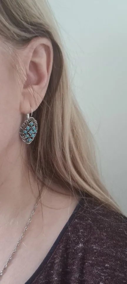 AINAMEISI haute qualité en alliage de Zinc bleu pierre turc bijoux boucles d'oreilles pour femmes Vintage géométrie princesse crochets boucle d'oreille