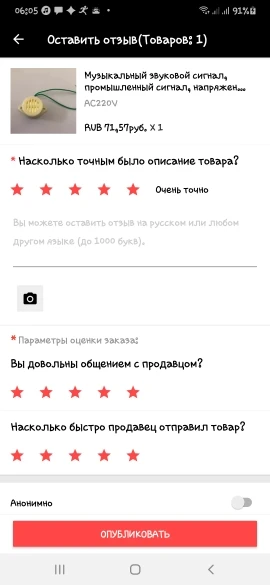 Évaluation Aliexpress :