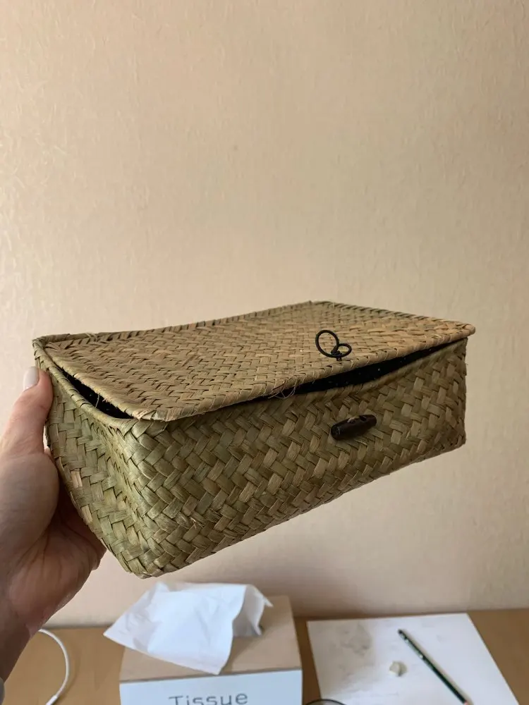Algues tissé à la main paille vêtements panier de rangement maquillage organisateur boîte de rangement jonc de mer paniers à linge rotin boîte avec couvercle
