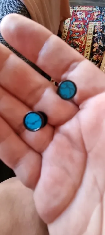 Alisouy 2 pièces en acier inoxydable Double face rond pierre haltère hommes femmes vis goujon Barbell Piercing boucles d'oreilles faux bouchon d'oreille