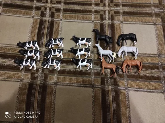 Animaux de la ferme en PVC échelle 1:43 pour décor maquette de train, modèle chevaux et vache, disposition chemin de fer,