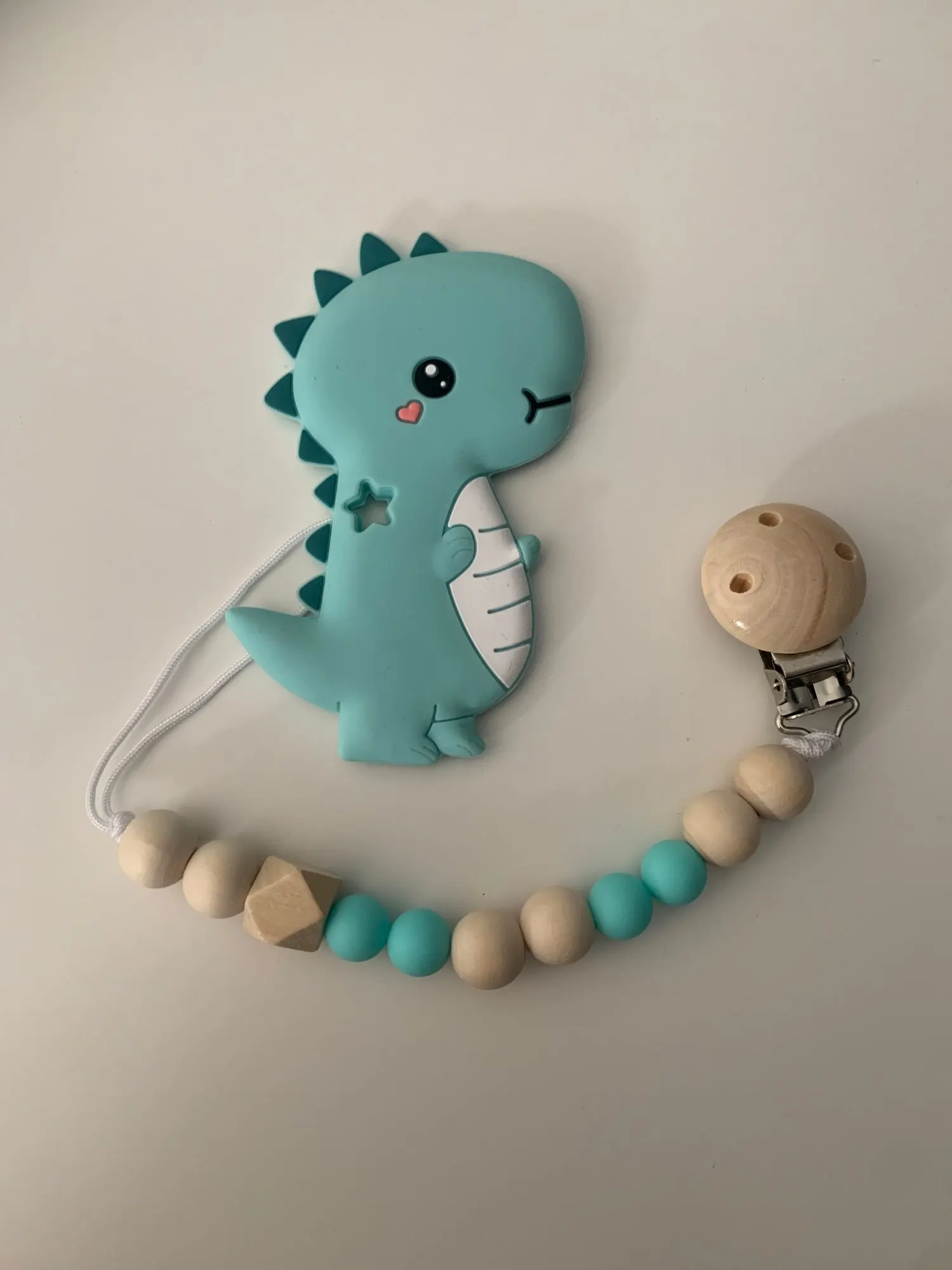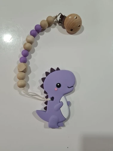 Anneau de dentition pour bébé, Clip de sucette, chaîne, dinosaure, dessin animé perles en bois factices, laisse à mâcher, porte-mamelon, anneau de dentition