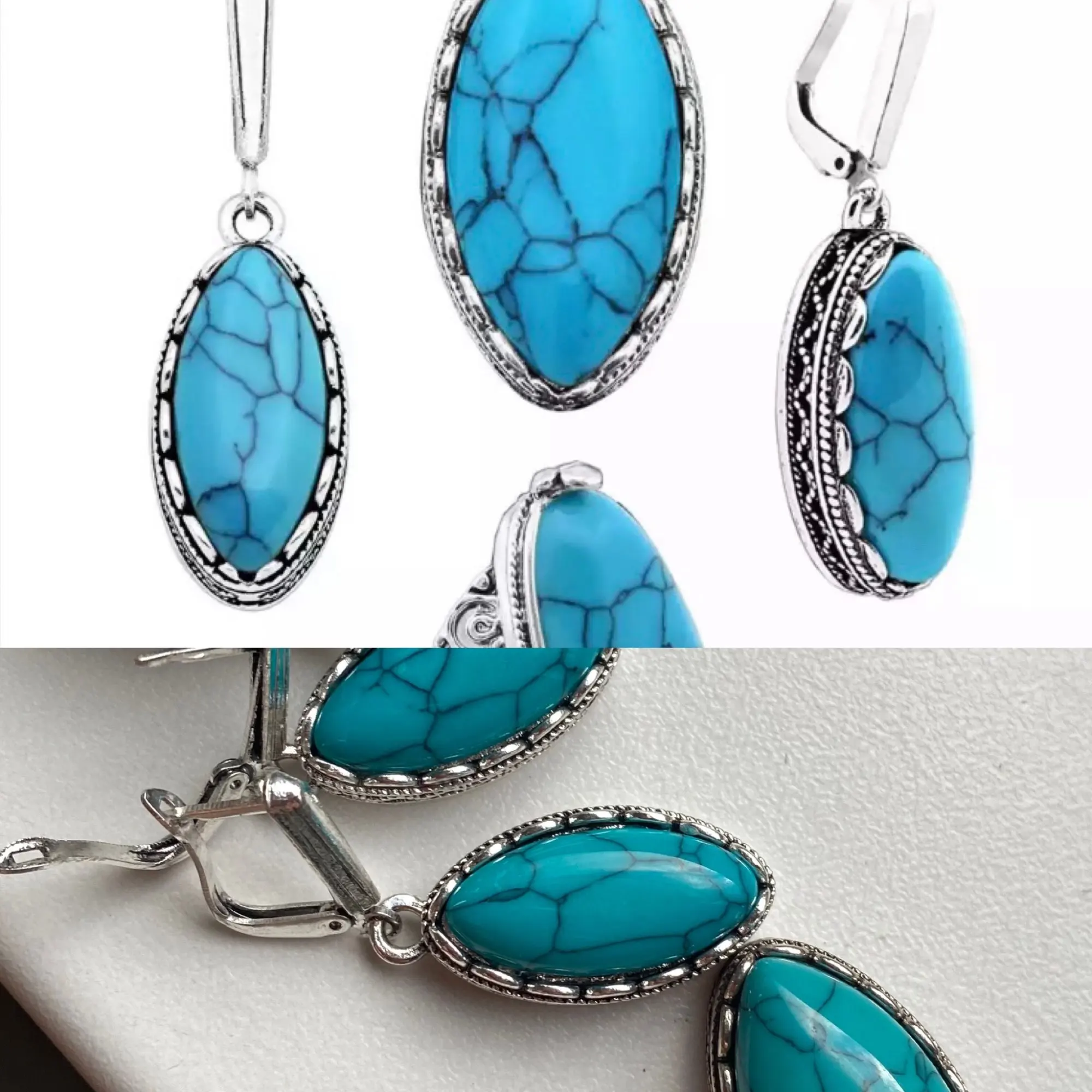 Anstory Eye Forme Pierre Parures 4 Couleurs Collier Boucles D'oreilles Bagues Pour Femmes Antique Argent Plaqué Chaîne En Acier Inoxydable Cadeau