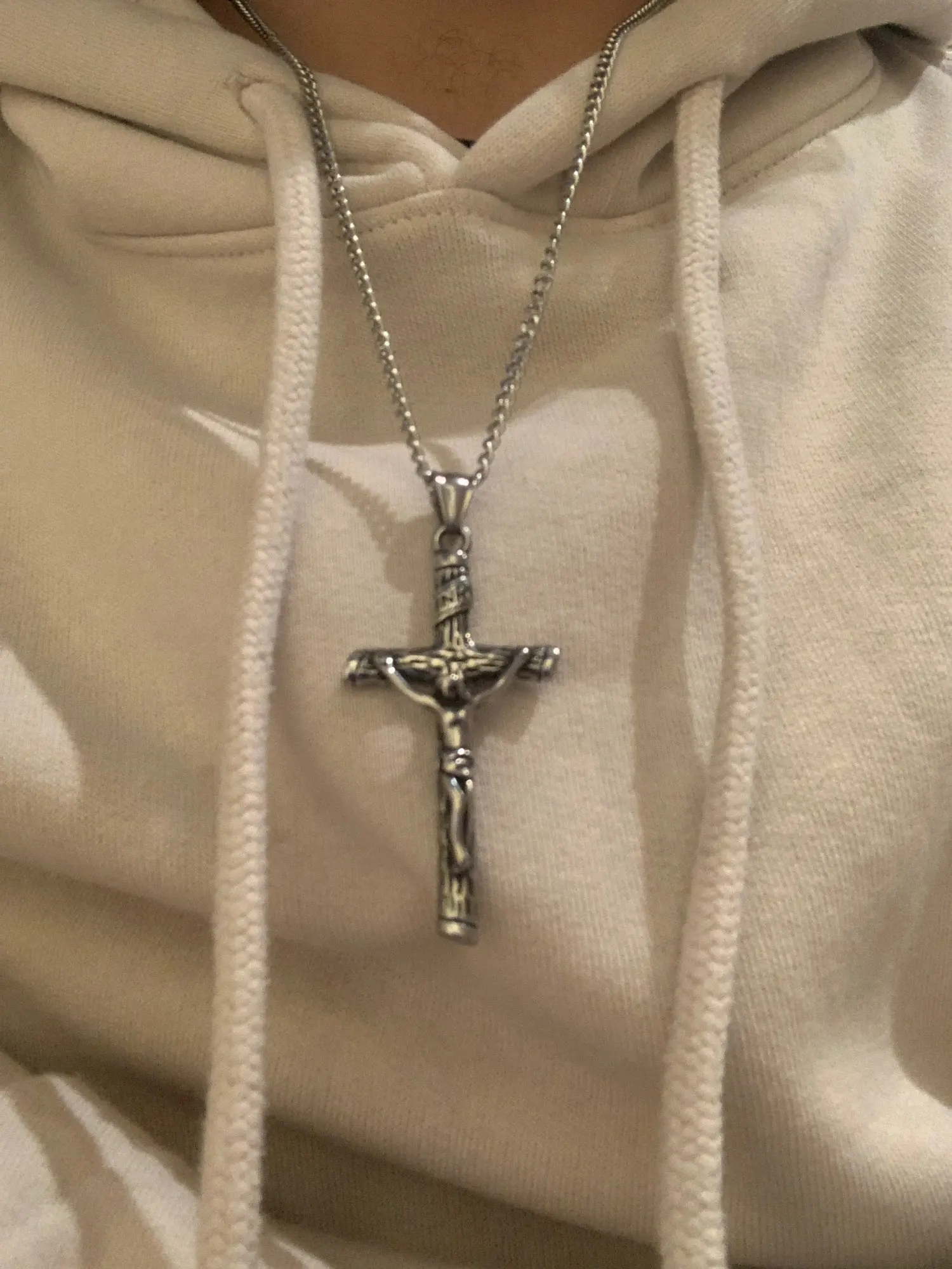 Antique argent Crucifix croix breloques collier pendentif en acier inoxydable Punk bijoux pour hommes mâle jésus chapelet baptême cadeau