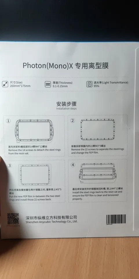 ANYCUBIC – lot de 5 films FEP pour imprimante 3D, résine Photon Mono X, 260x175mm, SLA/LCD, 0.1-0.15mm
