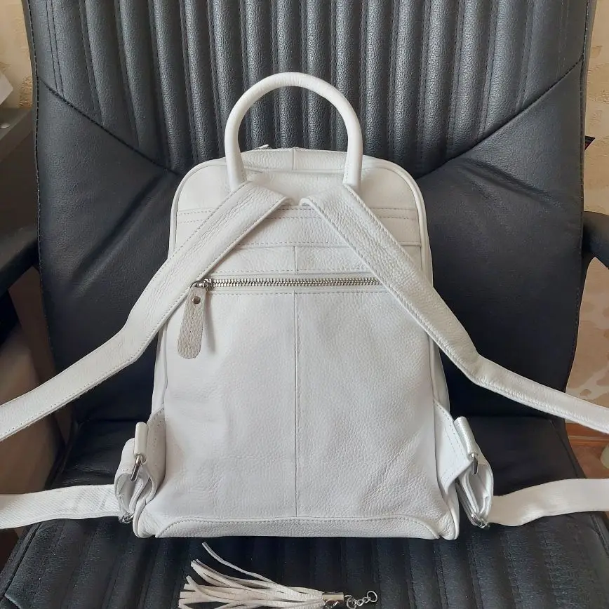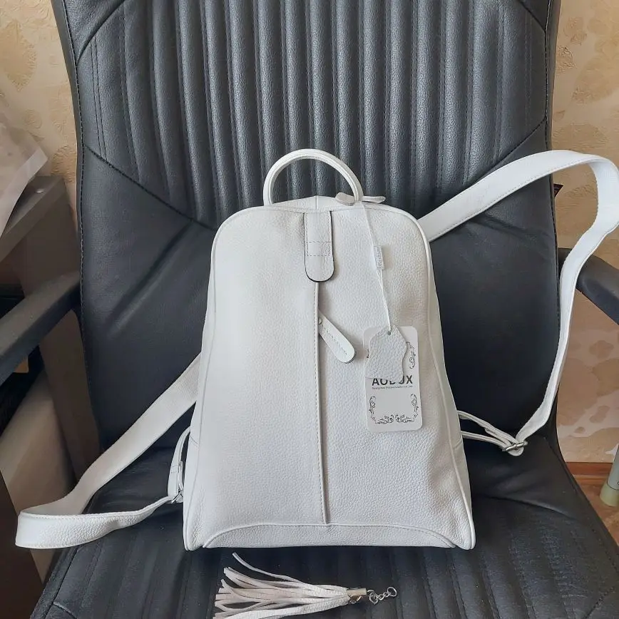 AODUX – sac à dos d'école en cuir véritable 100% pour femmes, avec couche supérieure en cuir de vache, couleurs bleu clair/gris/rose/blanc/Beige