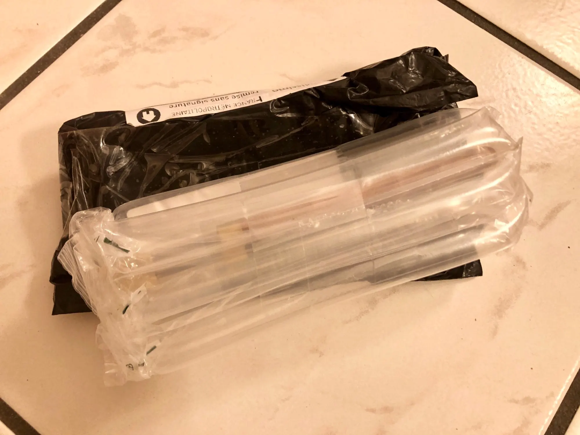 Reçu en moins de 2 semaines dans un paquet super protégé. Très bel objet (quelques marques d’oxydation) et excellent pinceau. Je suis ravie de l’achat et rachèterai à ce vendeur.