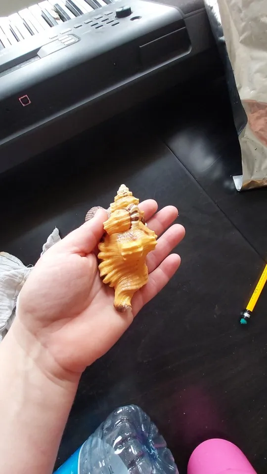 Aqumotique Unique Cymatium Lotorium jaune 1 pièce naturel noir-tacheté bain Triton environ 10cm coquillage naturel étoile de mer