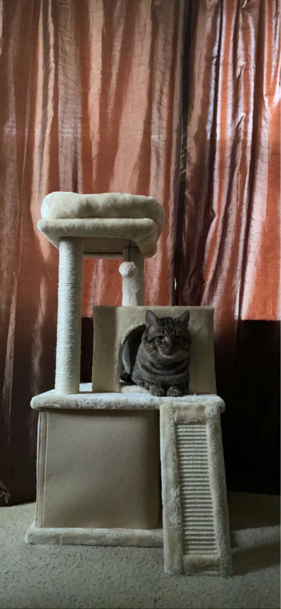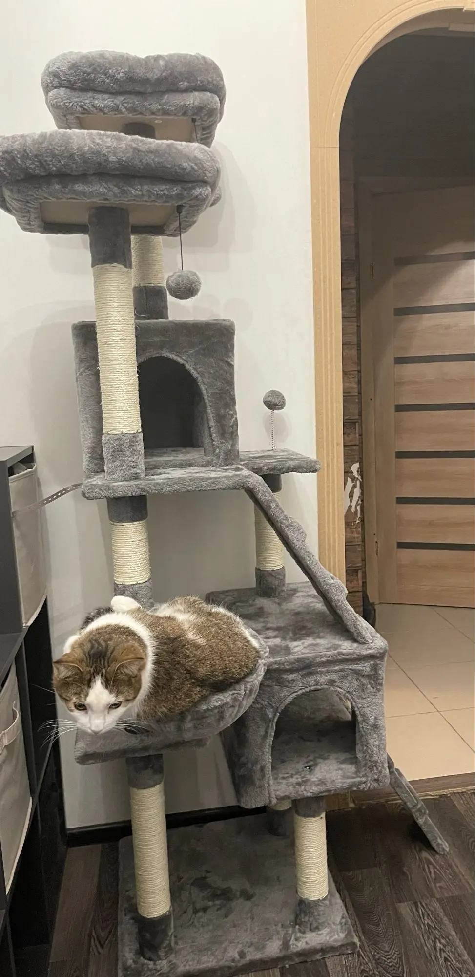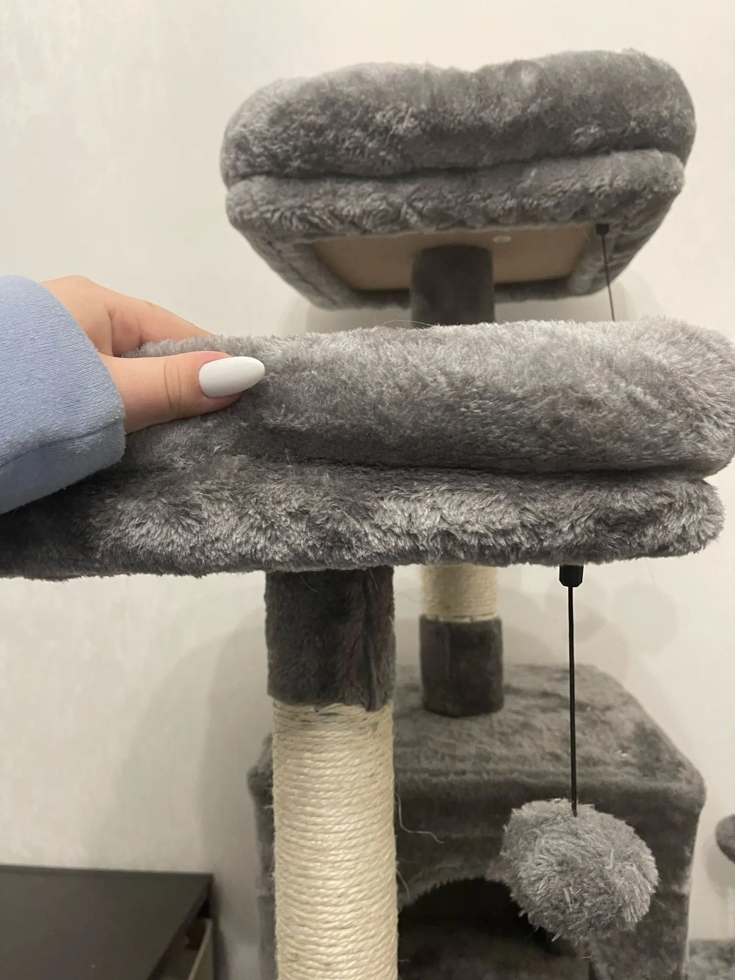 c'est un jolie arbre à chat assez facile à le monter, j'ai reçu le colis en moins de 4 jours bien emballer alors je recommande le produits de france à france c'est rapide. merci à vous mes chats sont heureux.