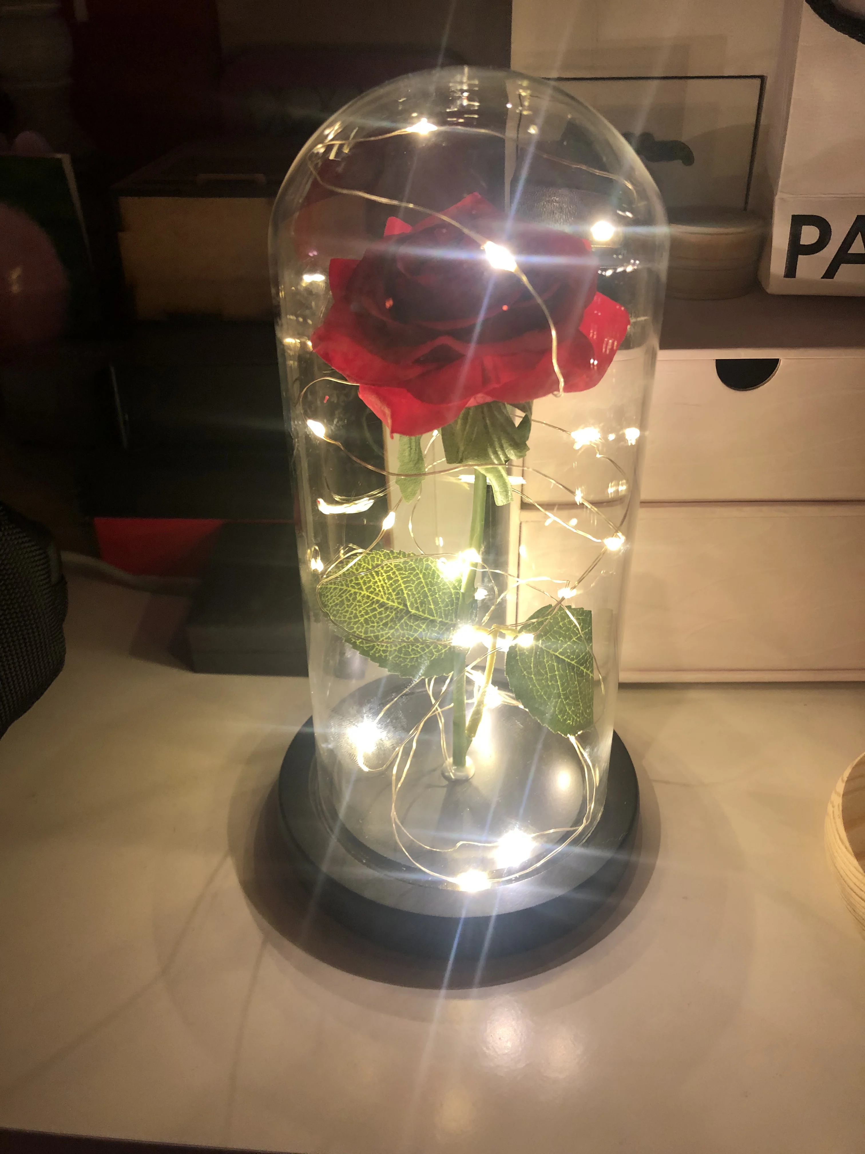 Artificielle Rose éternelle beauté et bête Rose en verre couverture LED veilleuse pour la décoration de la maison mère saint valentin nouveau Yea cadeau