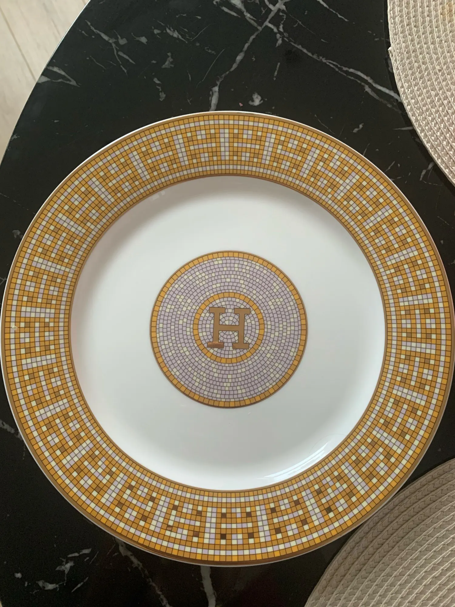 Assiettes en porcelaine, en porcelaine, marque "H" contour de design en mosaïque, forme ronde, assiette à steak, décoration cadeaux de mariage