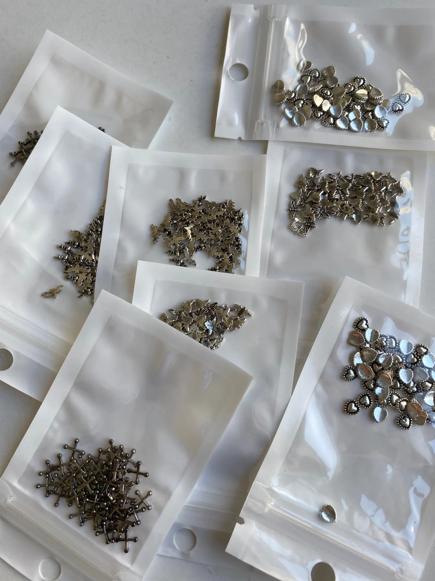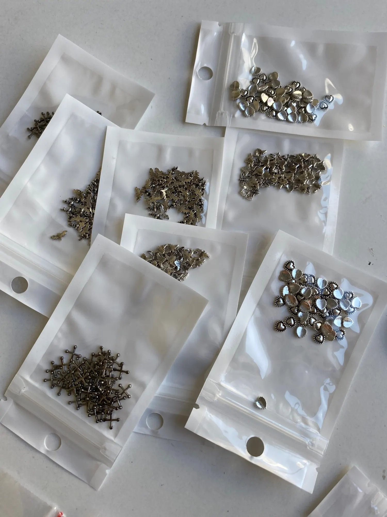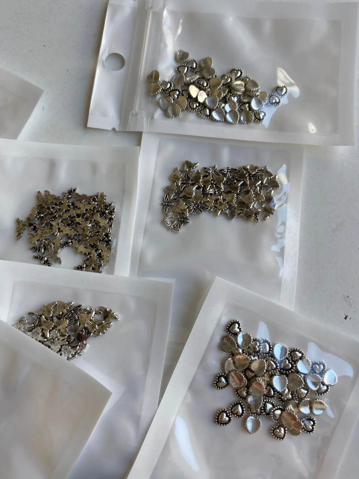 Autocollant d'ongles en alliage, 50 pièces/paquet, accessoires en métal pour photothérapie, Nail Art, anneau de cœur, pointes de fleurs creuses, boucle de feuille, DIY bricolage