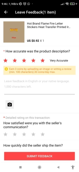 Évaluation Aliexpress :