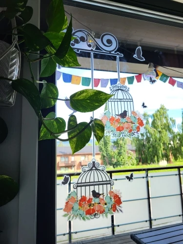 Autocollant mural cage à oiseaux volants colorés, papier peint décoratif créatif pour la maison, pour la chambre à coucher, pour fenêtre de chambre d'enfant