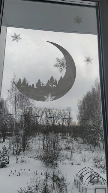 Autocollant mural électrostatique mois de neige | Autocollant de fenêtre décalcomanie de noël, pour la maison, décoration de noël, papier peint du nouvel an