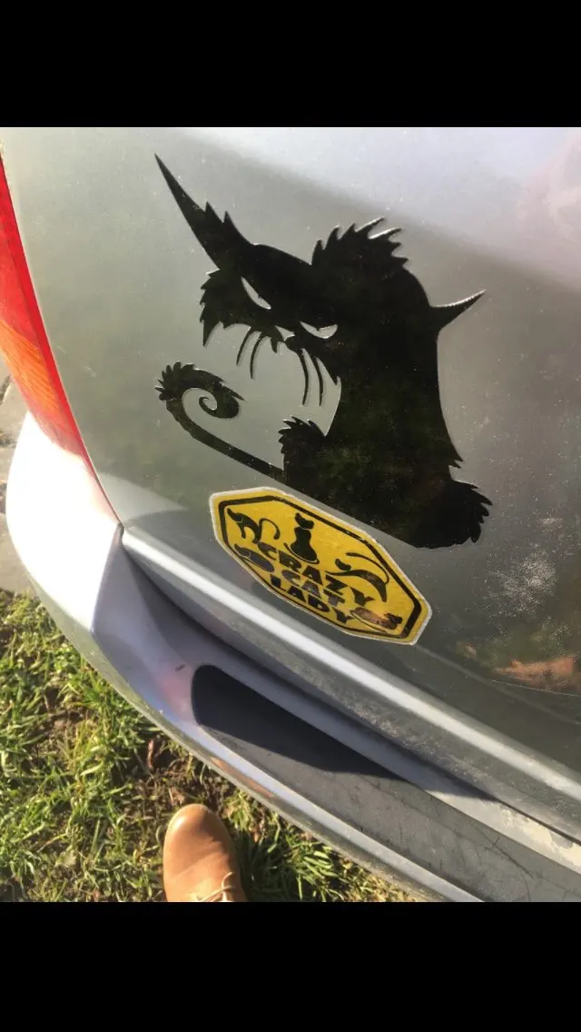 Autocollants de fenêtre de chat terroriste d'halloween, autocollant noir/argent 14.6, 12.9 x C4-0644 CM, drôle, créatif, dessin animé