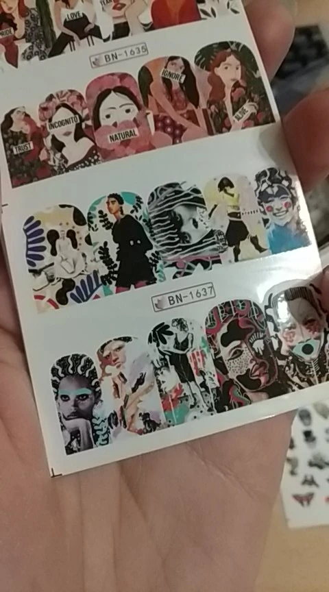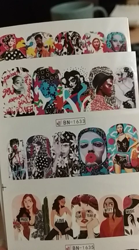 Autocollants de Portrait d'ongles pour femmes, 12 pièces, Art Pop, abstrait, décalcomanies d'ongles, Illustration, transfert, décorations coulissantes