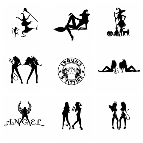 Autocollants de sorcière de voiture pour filles, Stickers décoratifs en vinyle, produits automobiles, stickers décoratifs, porte et fenêtre de voiture