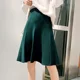 Automne 2022 élastique tricot femmes jupe taille haute solide vert a-ligne jupes pour femmes plissé Streetwear Midi bas femme