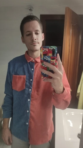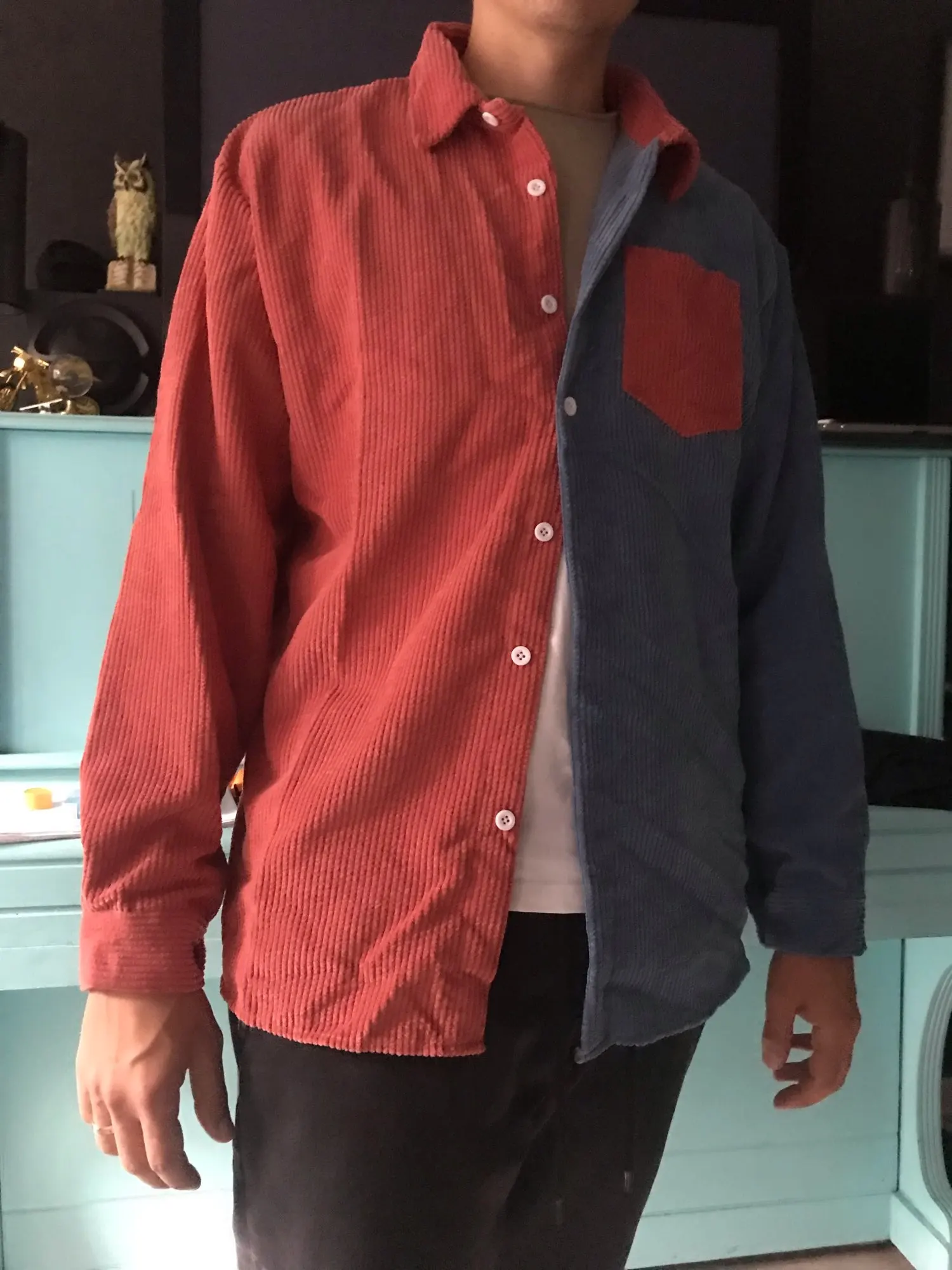 Automne hommes contraste Patchwork haut décontracté bouton velours côtelé chemises jeunesse Premium Streetwear hommes revers poche à manches longues chemises