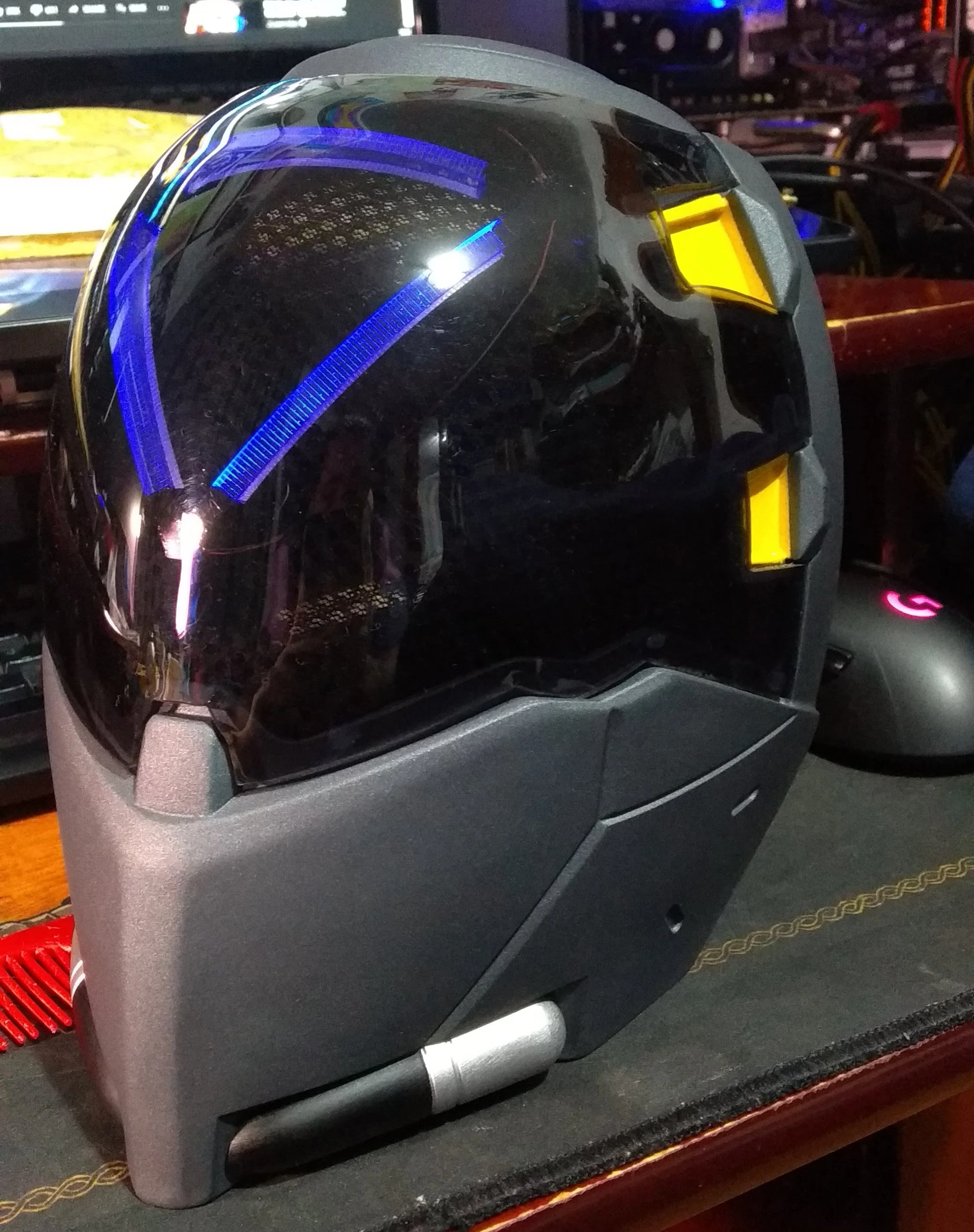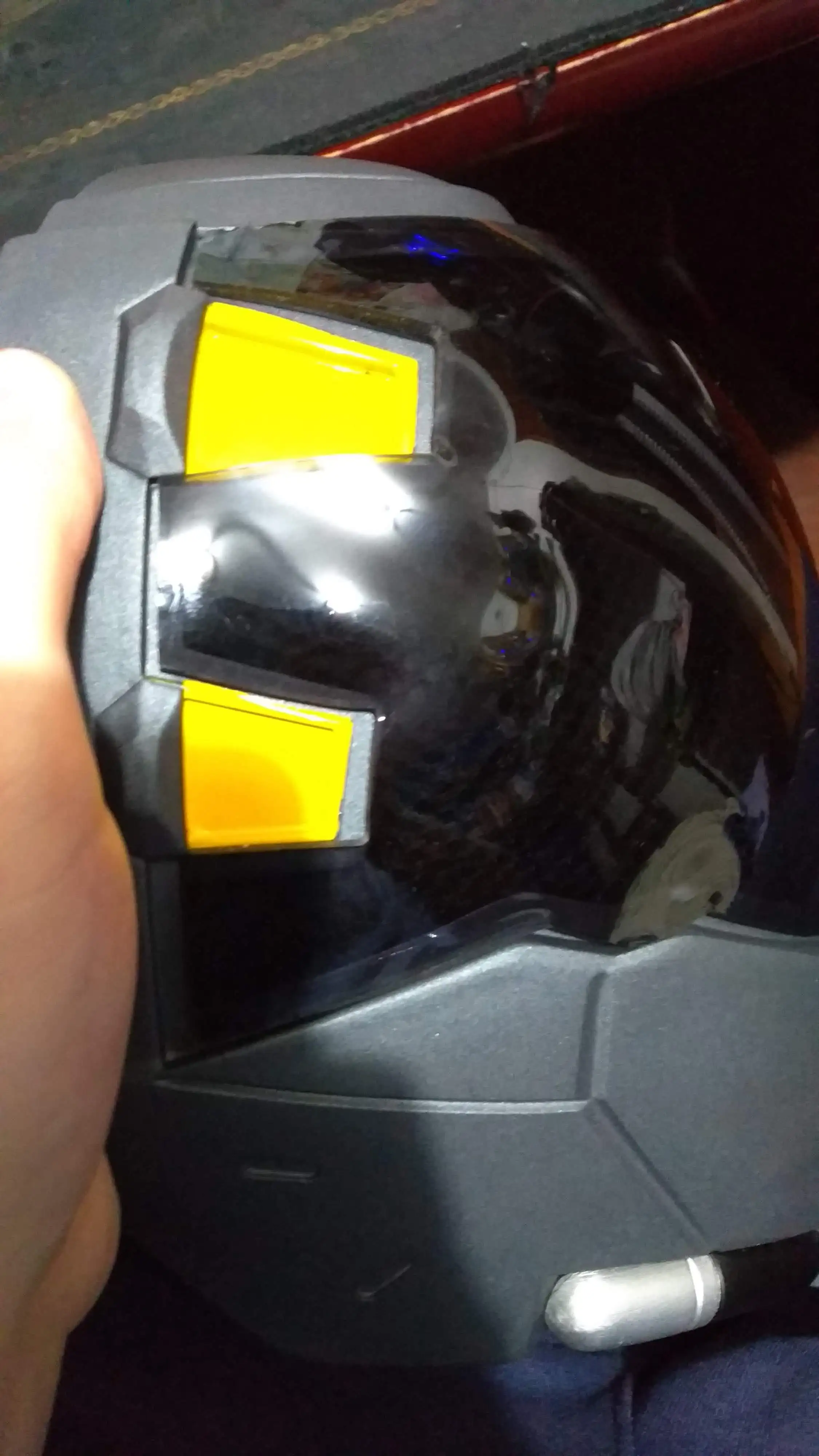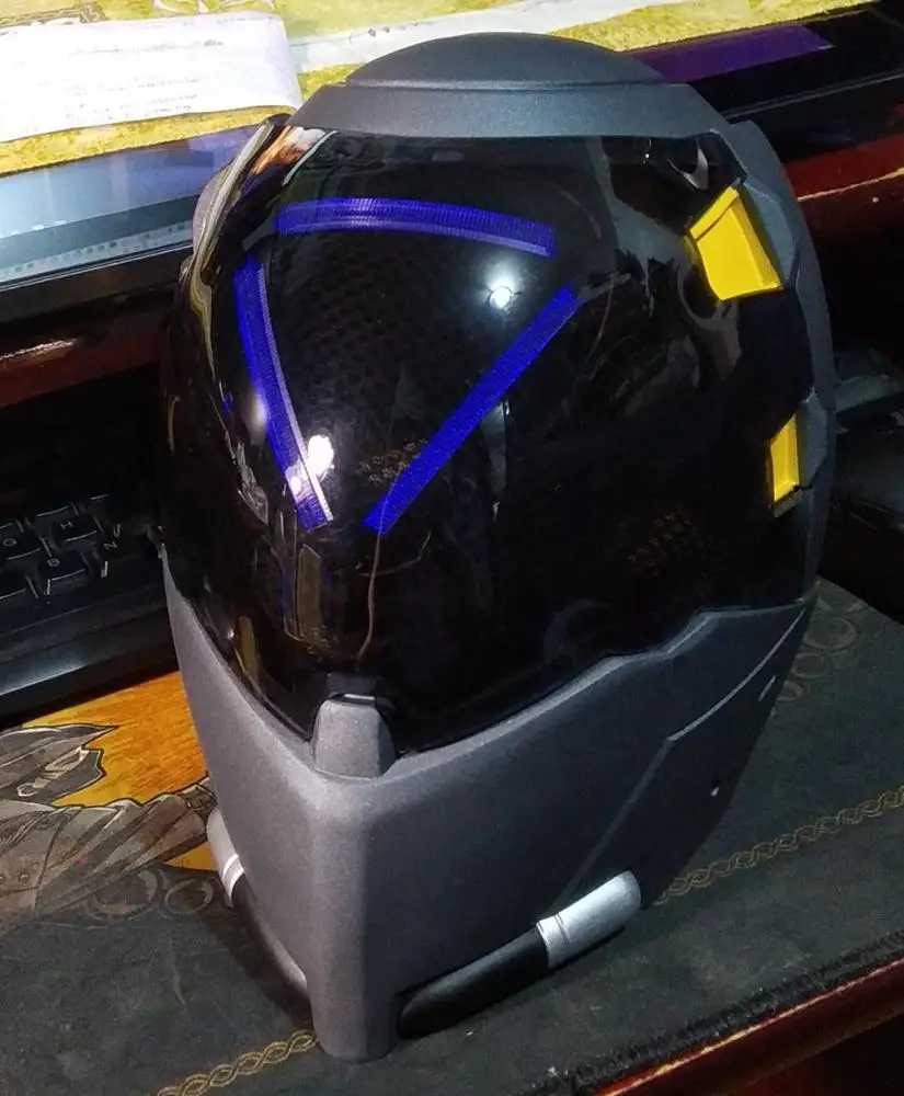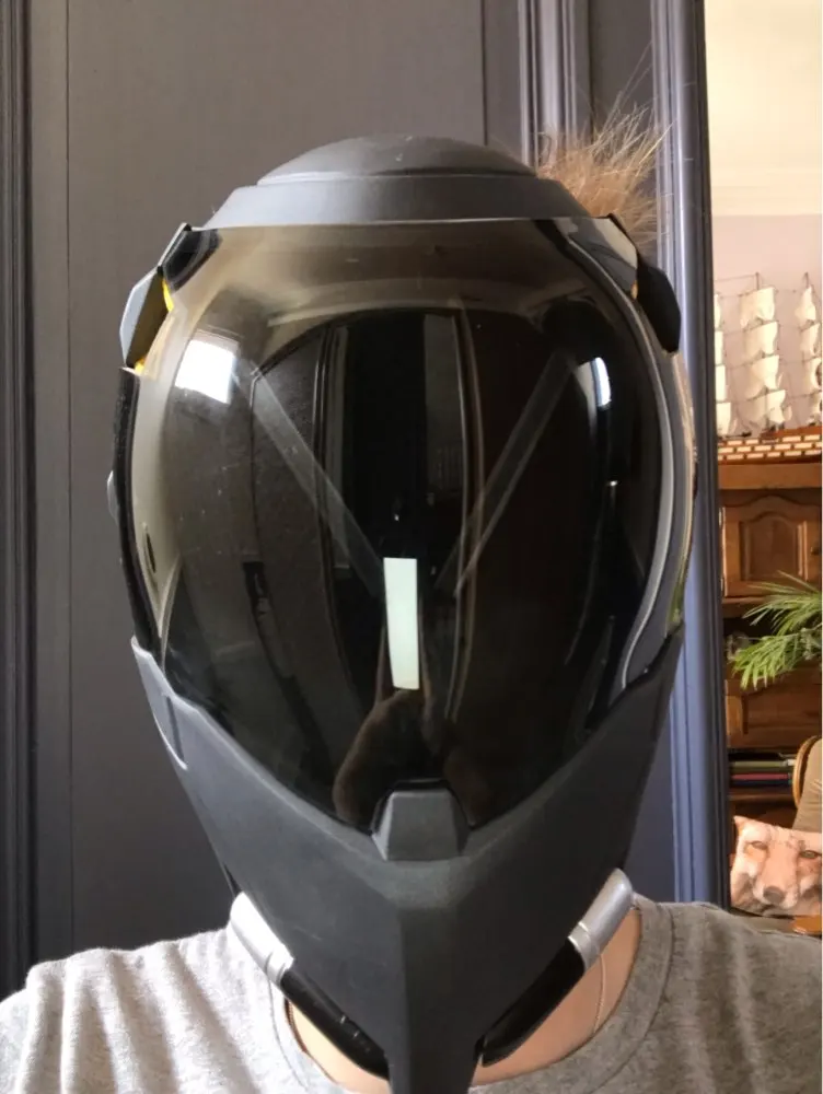Il y a de gros points de colle chaude sur la visière, des défauts de peinture et la lumière (pile non fournie) s'est décollée et se balade entre la resille et la visière... C'est un poil cher pour ce que c'est