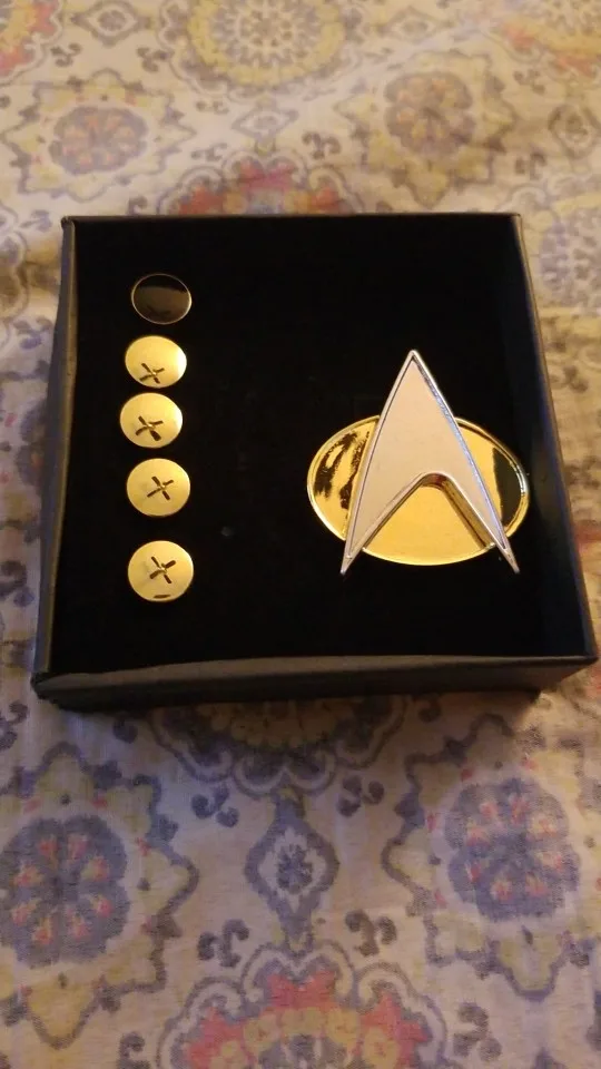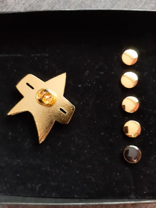 Le badge et les pins sont magnifiques. Ils semblent être plutôt solides et le métal brille ce qui rend très bien. Ils sont fidèles aux badges et pins de la série. Le colis est même arrivé 1 semaine en avance. Super achat, merci !