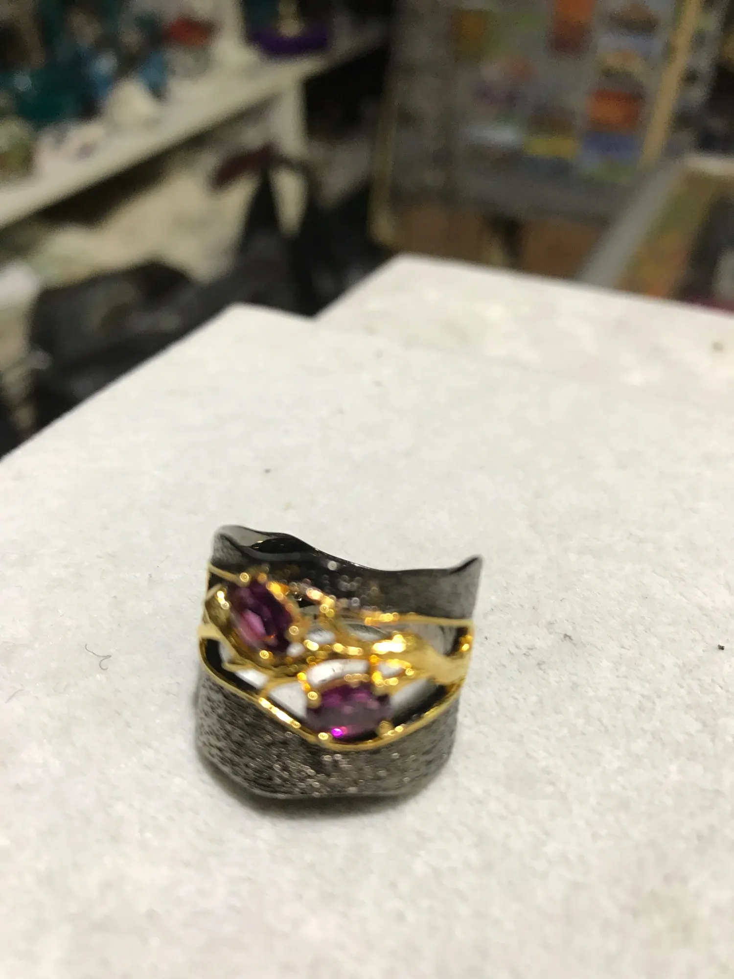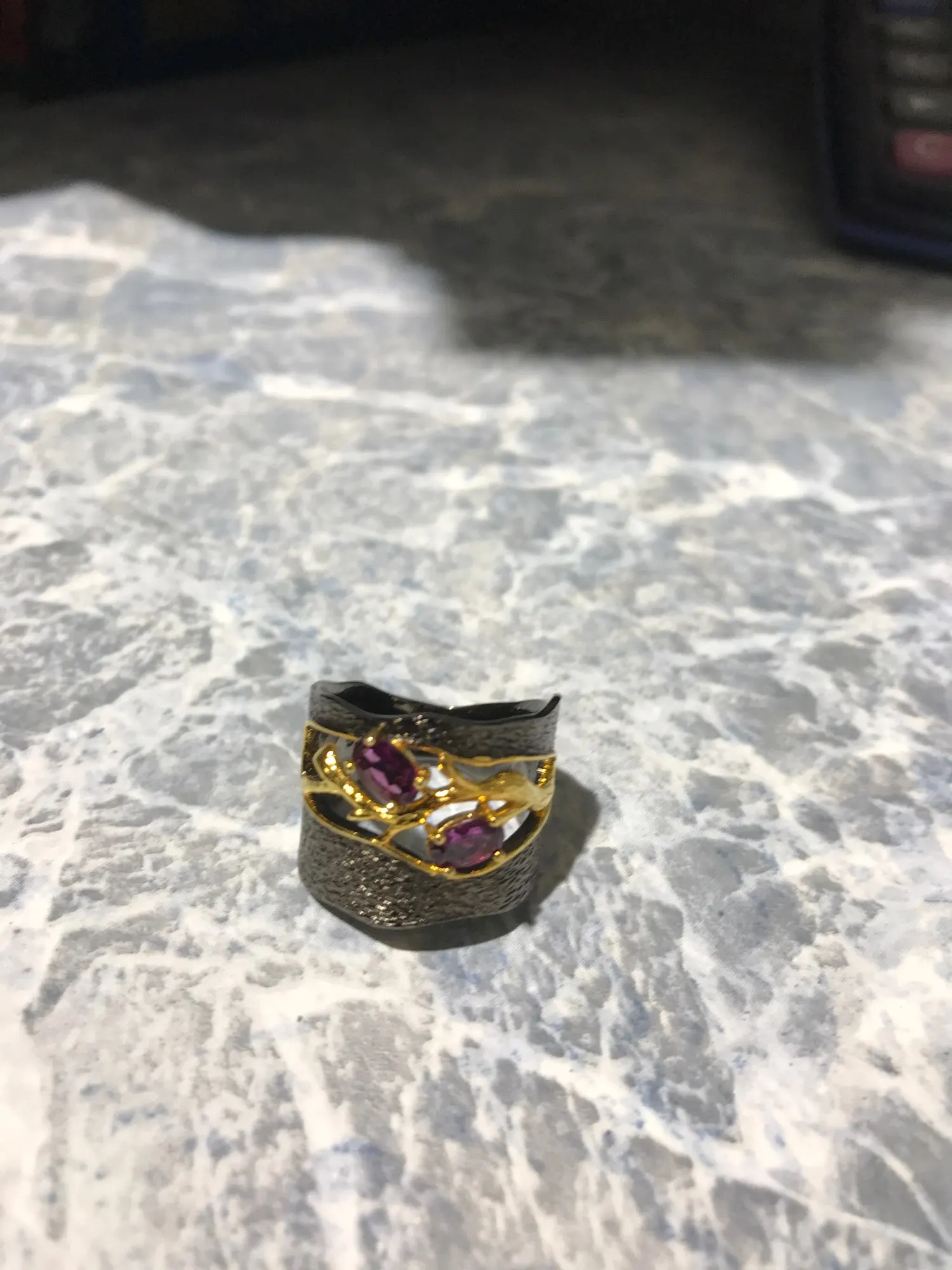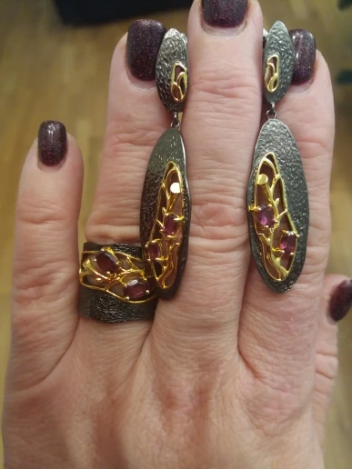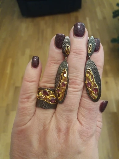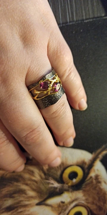 Nav sarkanais granat,akmentiņi ir lillā krāsā!Pats gredzens ļoti skaists!