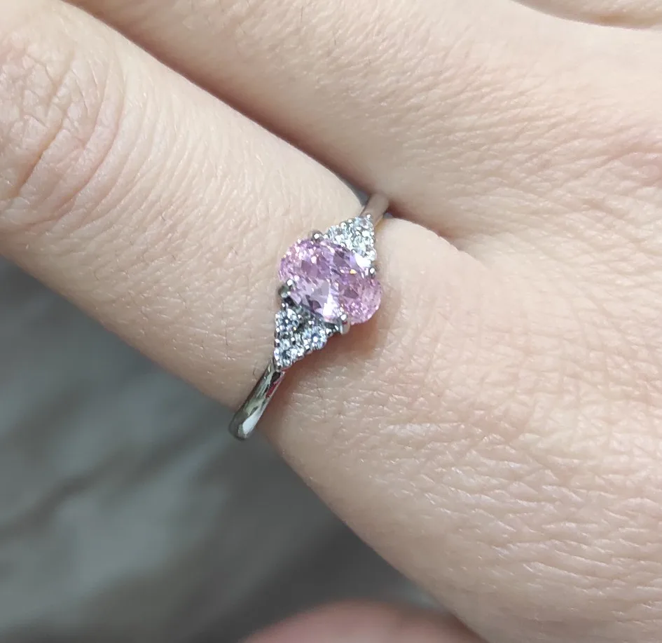 Bague en argent 925 pour femme et fille, bijou ovale en Zircon rose, accessoires de fête de fiançailles et de mariage, tendance