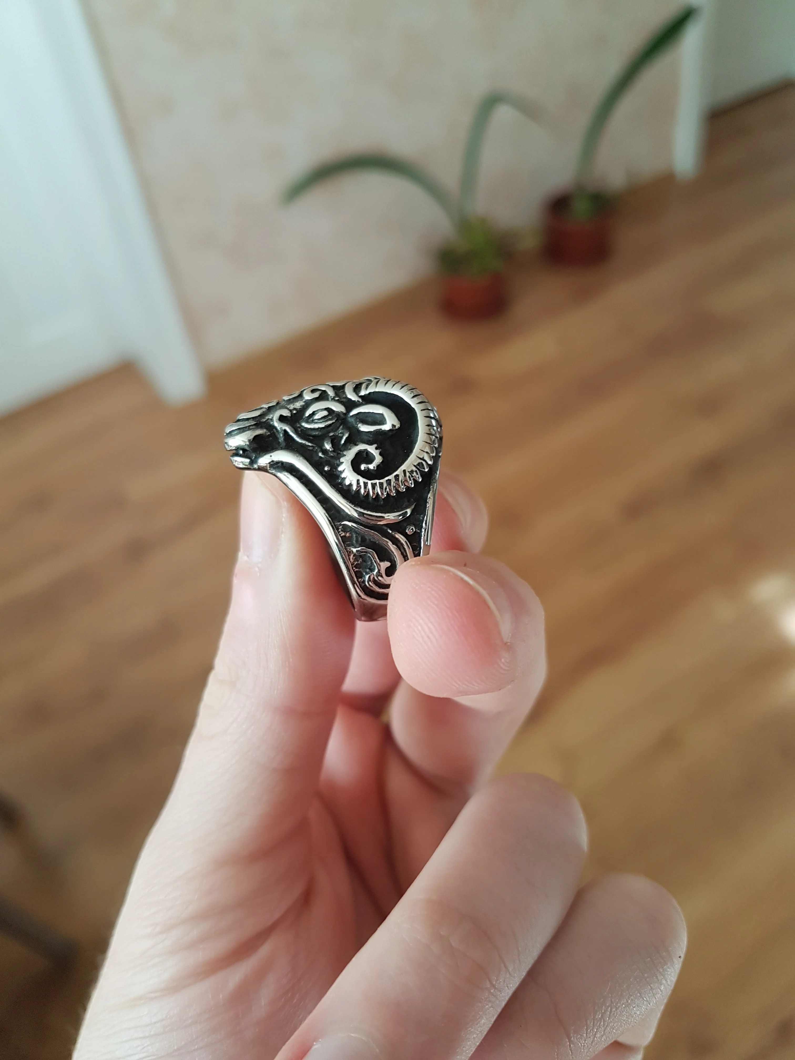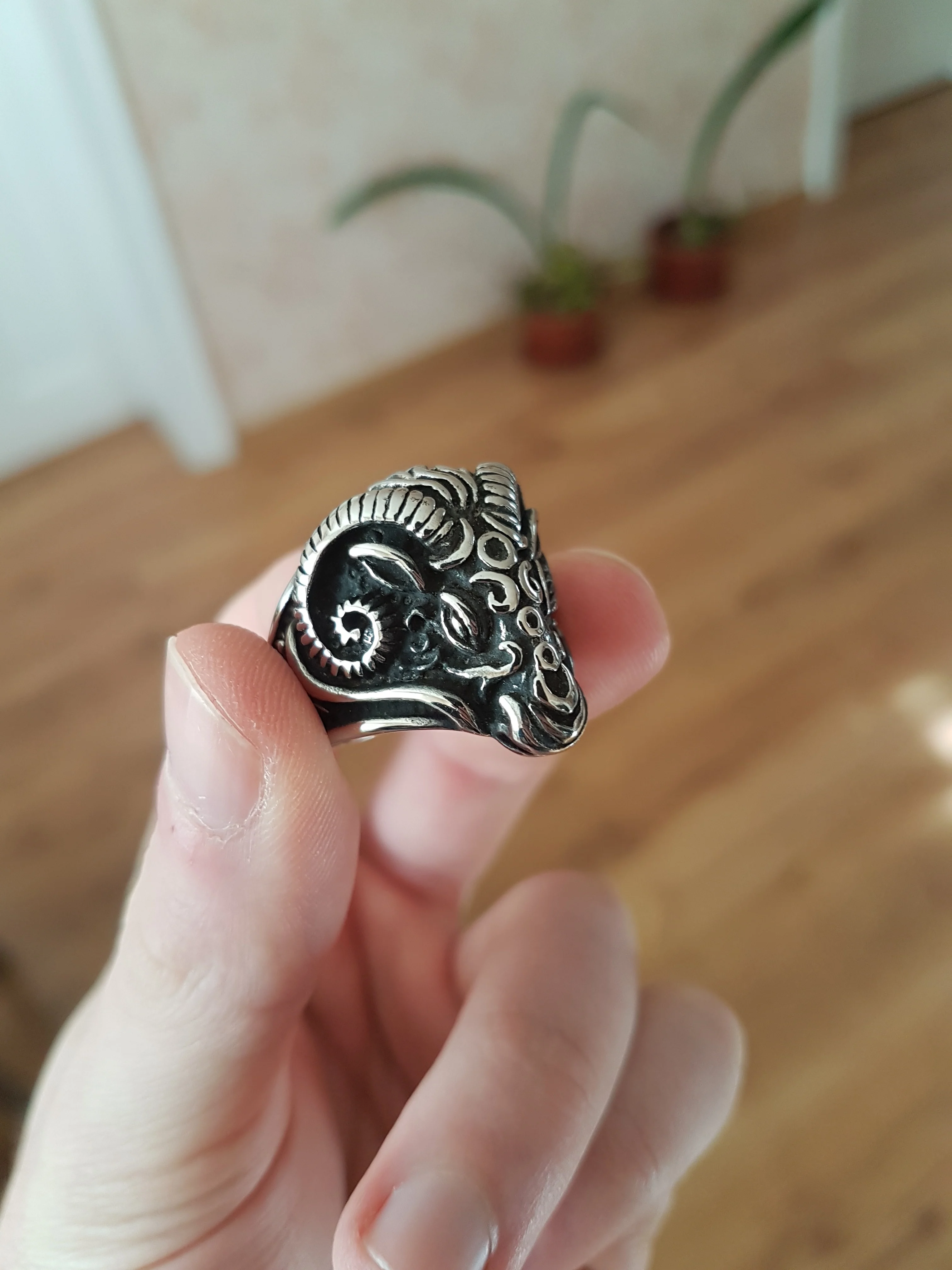 Bague Vintage gothique en forme de tête de mouton pour hommes, anneau en acier inoxydable, en métal lourd, Animal, Punk, motard, bijoux
