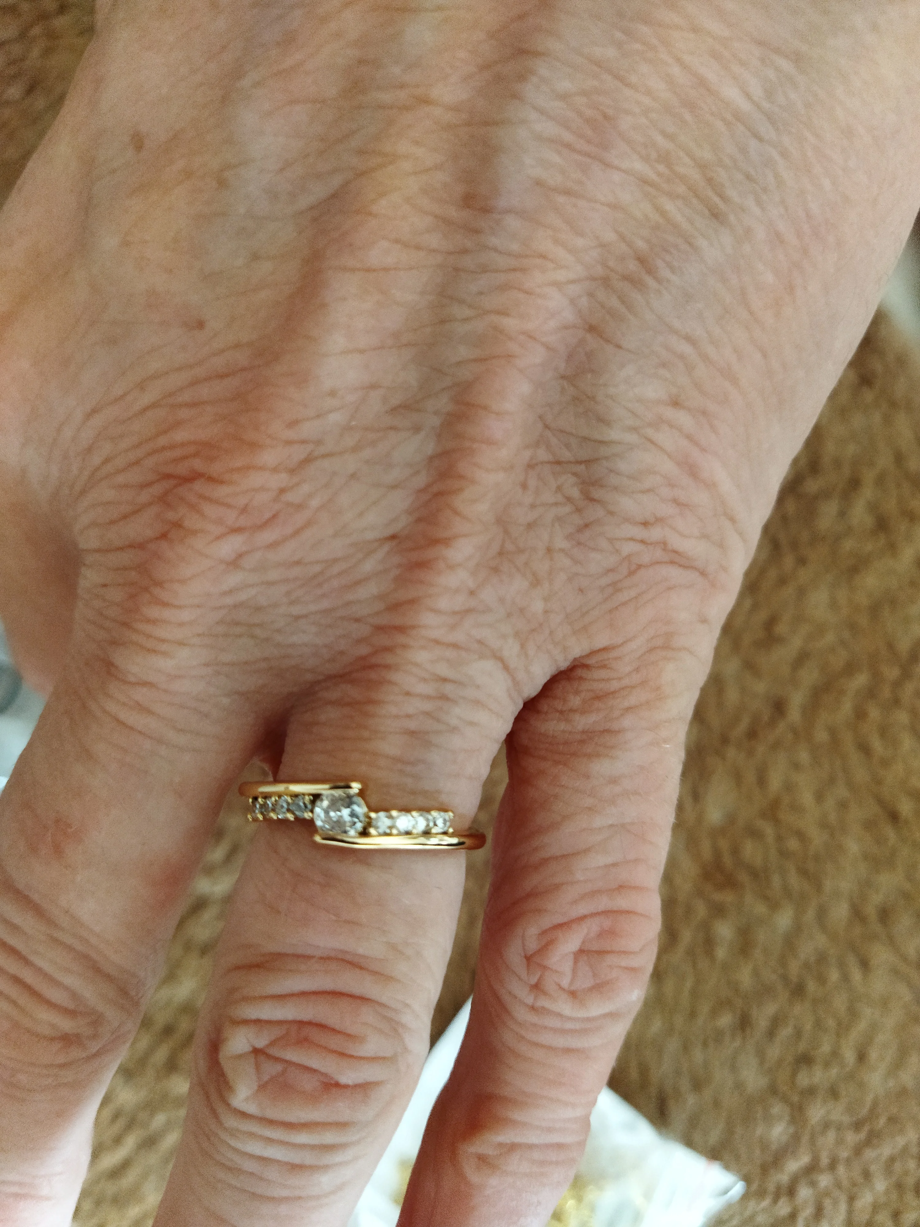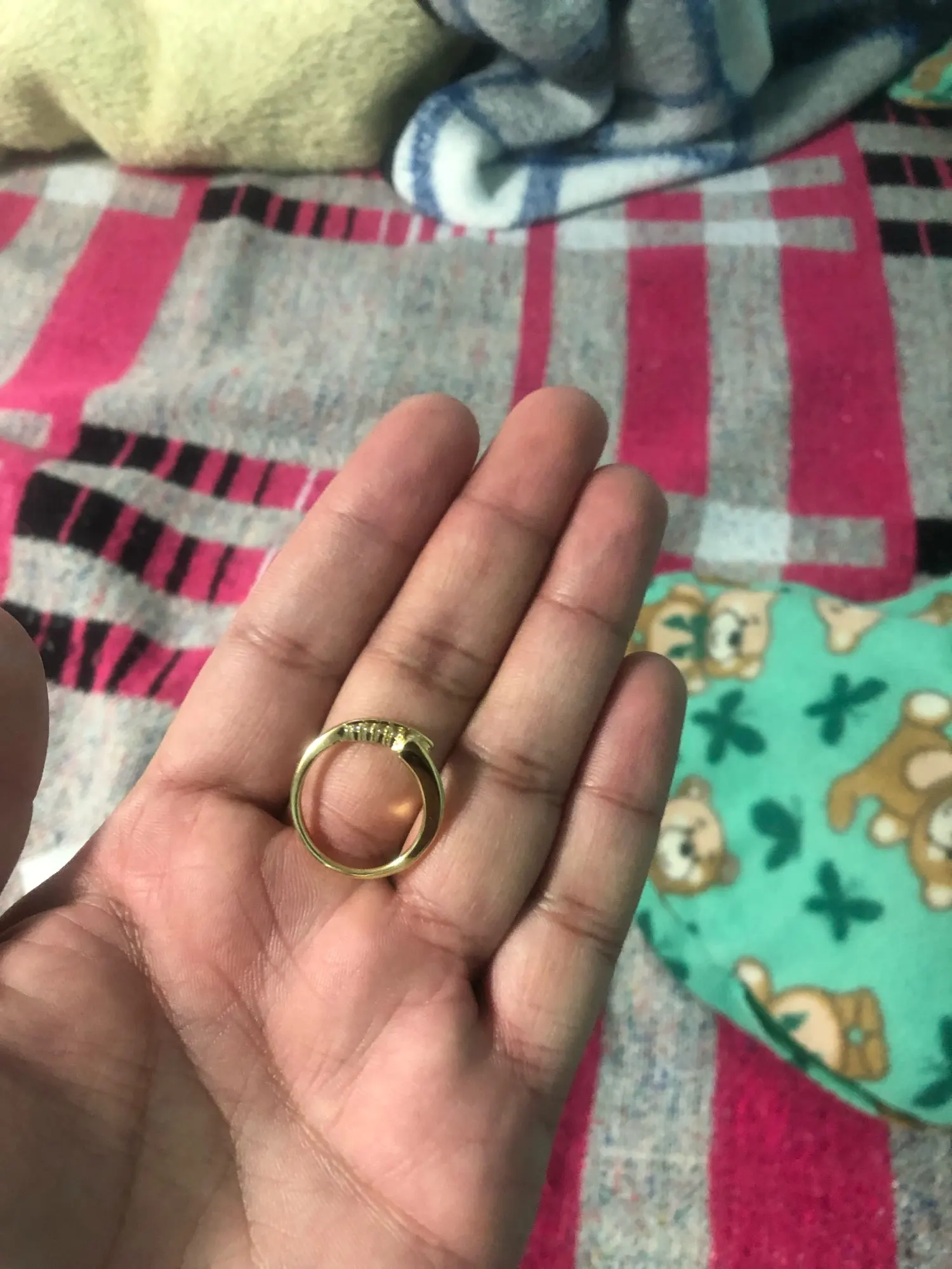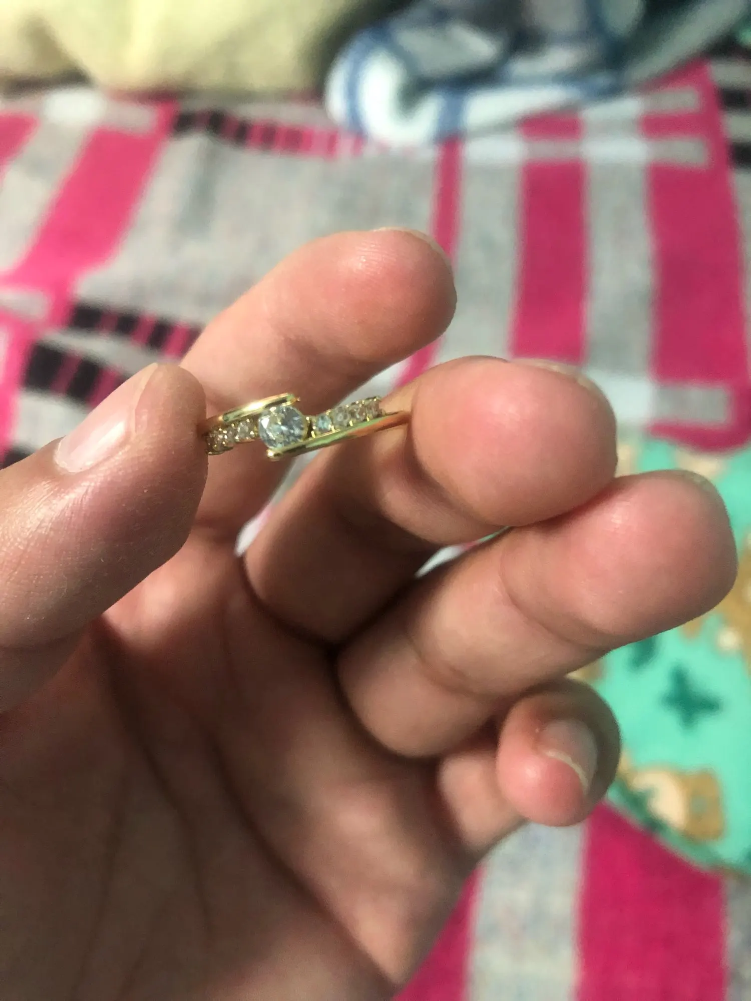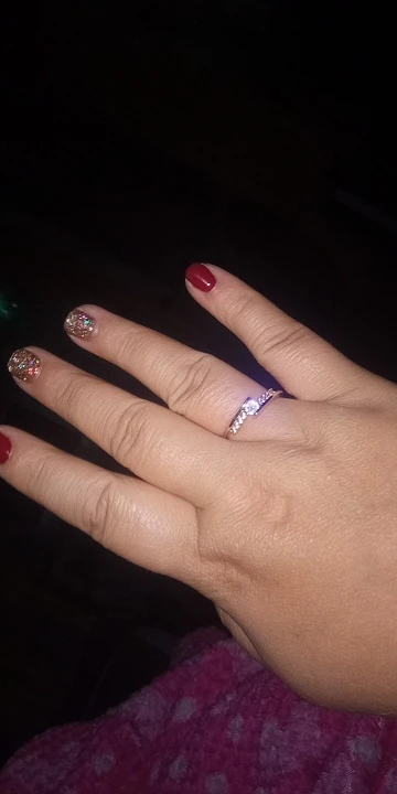 Très belle bague, vient avec un poinçon. On dirait une bague en argent incrustée de bijoutier. La pierre est très belle et on la confondrait avec une vraie. Je conseille fortement, la taille est correcte c'est parfait. Merci au vendeur :)