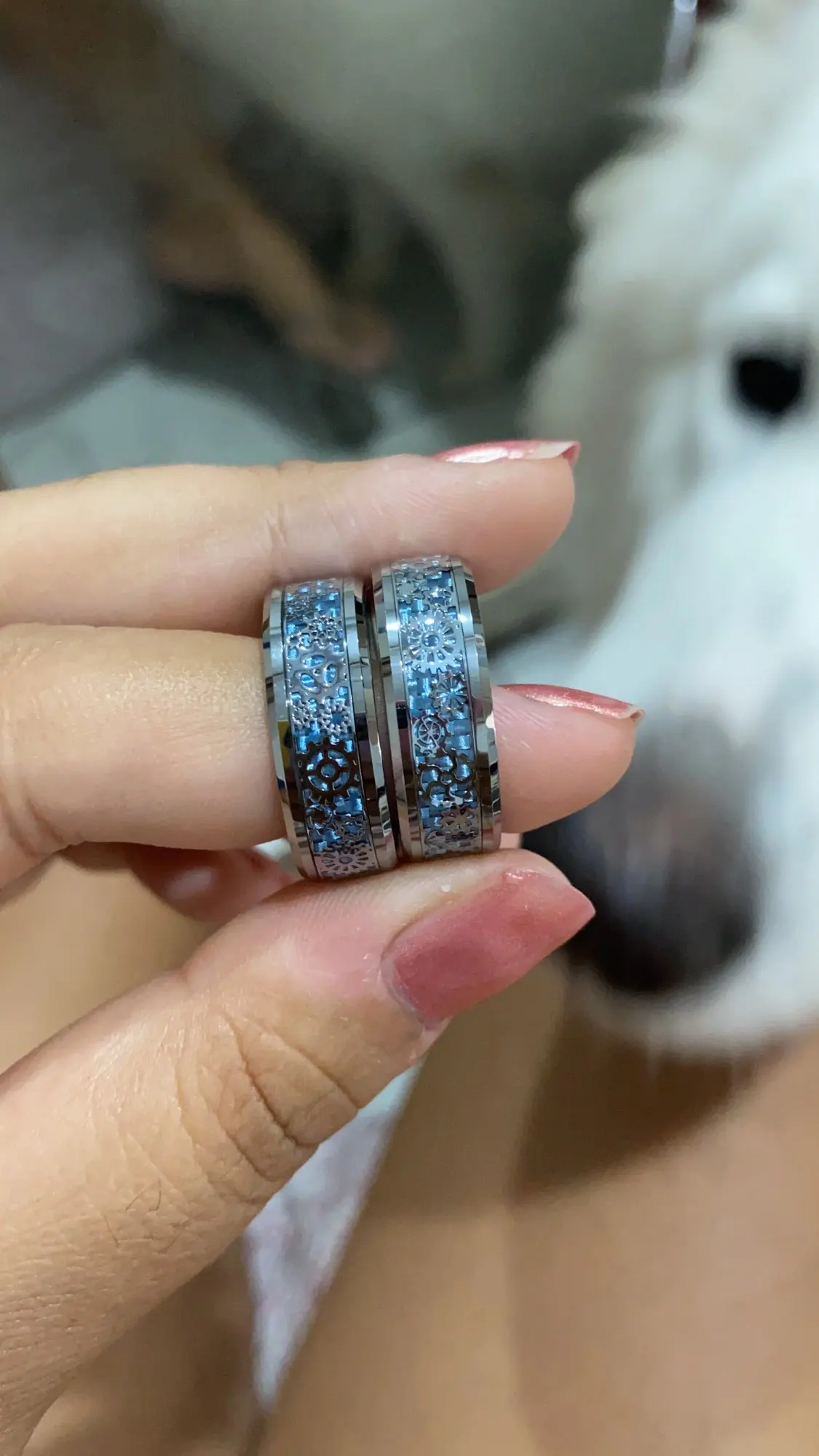 Bagues de mariage en carbure de tungstène, anneaux uniques de 8mm, roue d'engrenage, incrustation en Fiber de carbone bleue, bijoux à la mode, confortable