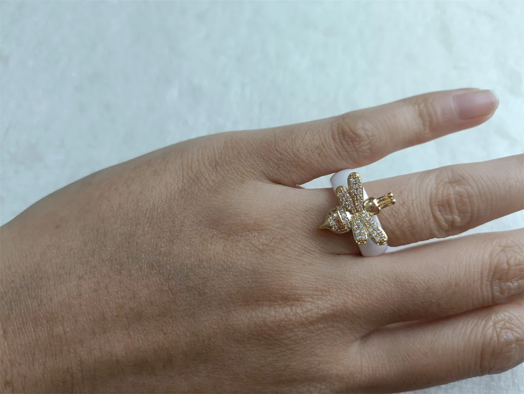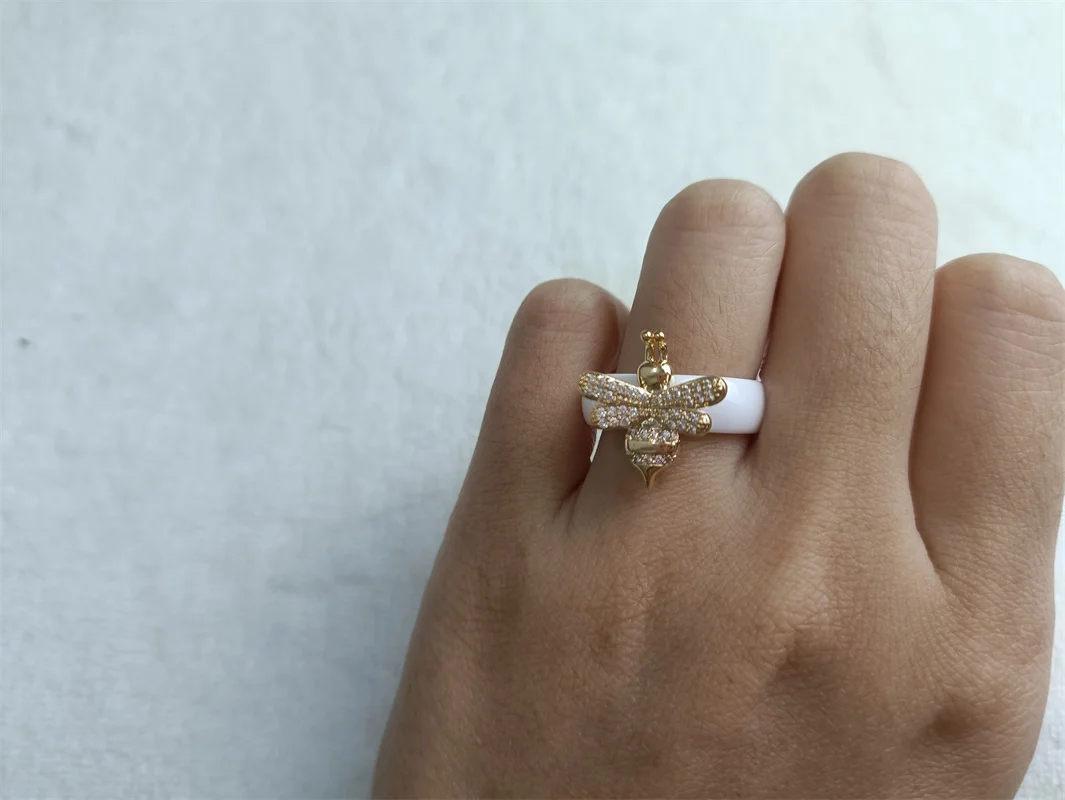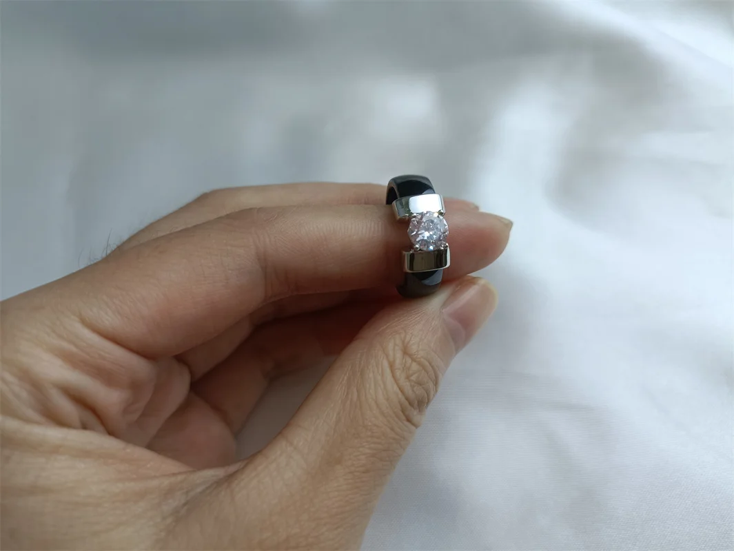 Bagues de mariage en céramique noir et blanc pour femmes, bague de fiançailles en Zircon cubique, acier inoxydable, bagues d'amour élégantes, bijoux en céramique