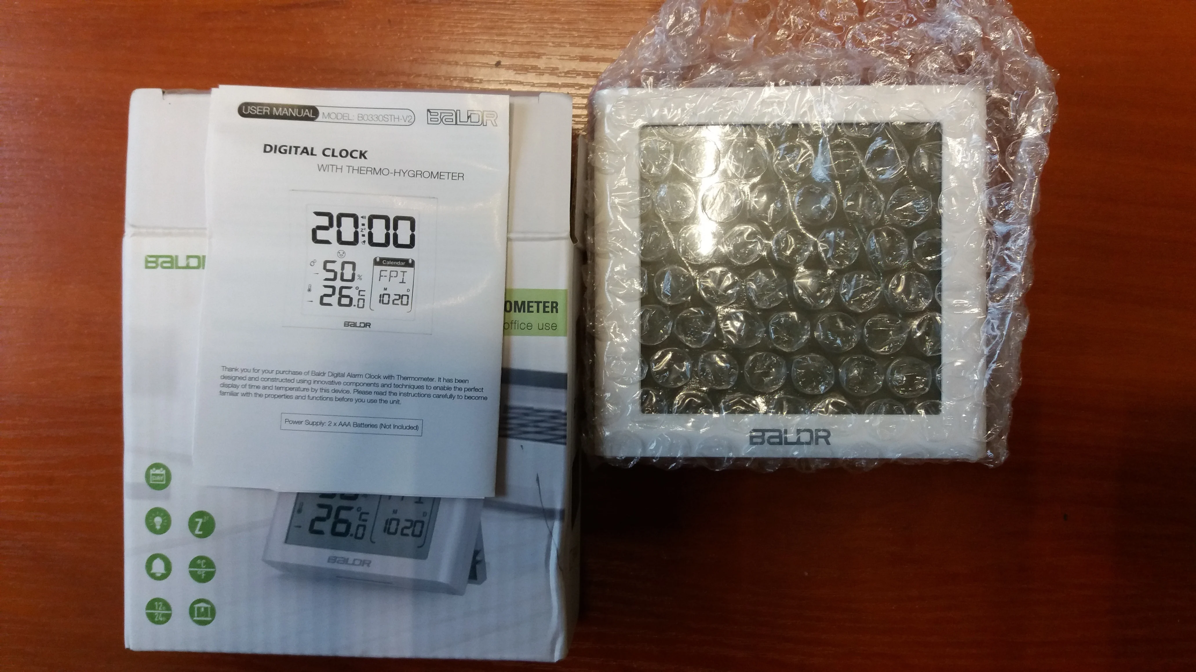 Baldr – réveil numérique de bureau, minuterie Snooze, montre, calendrier, thermomètre et hygromètre, avec capteur de température