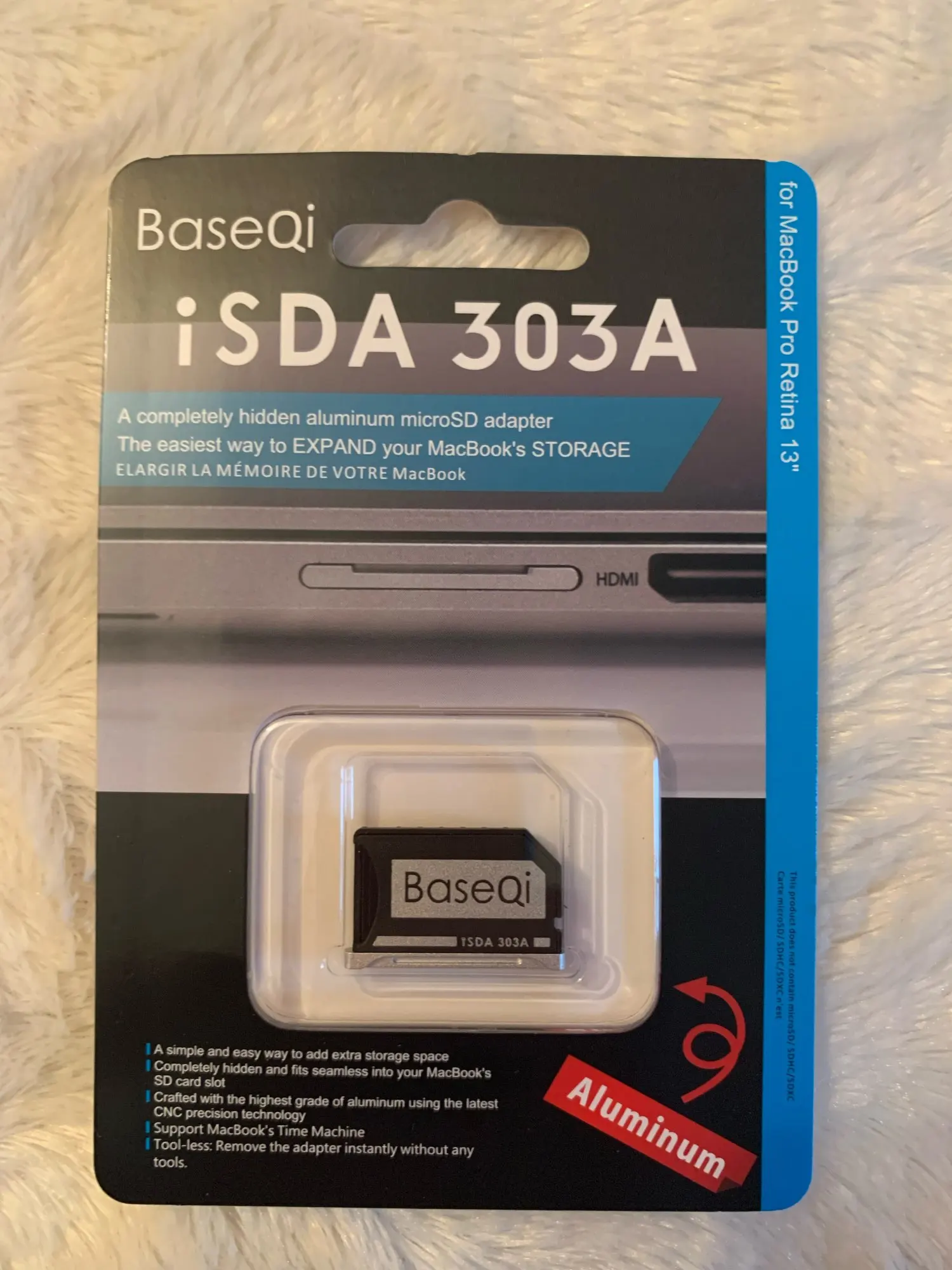 BaseQi aluminium Micro SD à SD carte adaptateur lecteur furtif lecteur de carte pour MacBook Pro Retina 13 "/15" et MacBook Air 13"