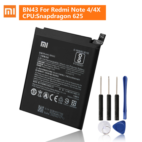 Batterie de remplacement d'origine pour Xiaomi Redmi Note4X Hongmi Note 4X Version Standard Redrice BN43 Note 4 mondiale Snapdragon 625