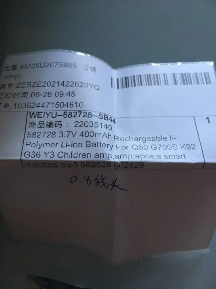 Batterie Li-ion li-polymère Rechargeable 582728 3.7V 400mAh pour Q50 G700S K92 G36 Y3 montres intelligentes pour enfants mp3 582828 602828