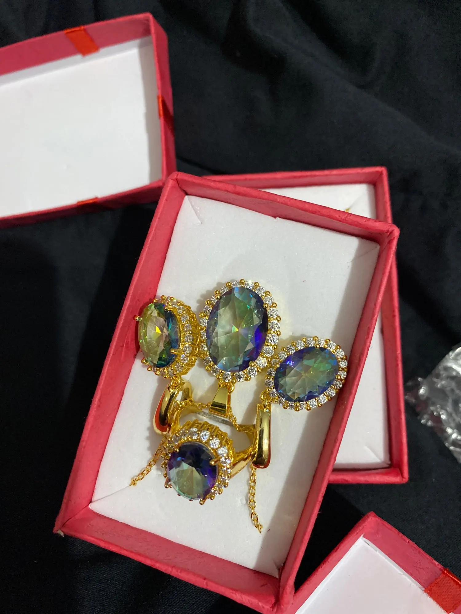 Beaucoup de couleurs grand ovale arc-en-ciel Zircon Rose or ensemble de bijoux réglable anneau boucles d'oreilles collier ensemble joli présent