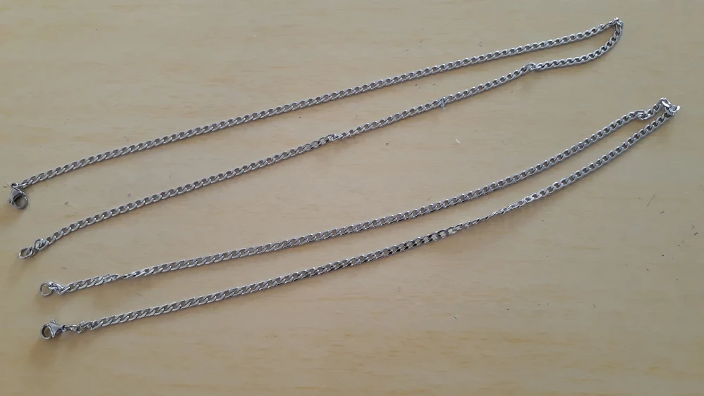 Jolie chaine mais je me demande si la matière ne va pas noircir. A voir à l'usage. Le système de fermeture n'est pas des plus solides.