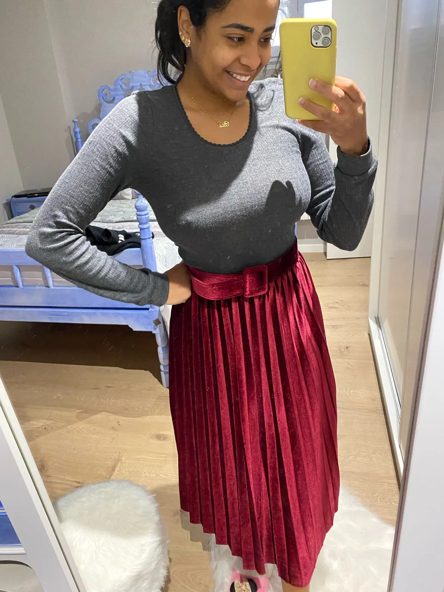 Beiyingni – jupe longue plissée avec ceinture pour femme, couleur métallique, argent, Midi, taille haute, mode, Vintage, soirée, automne hiver