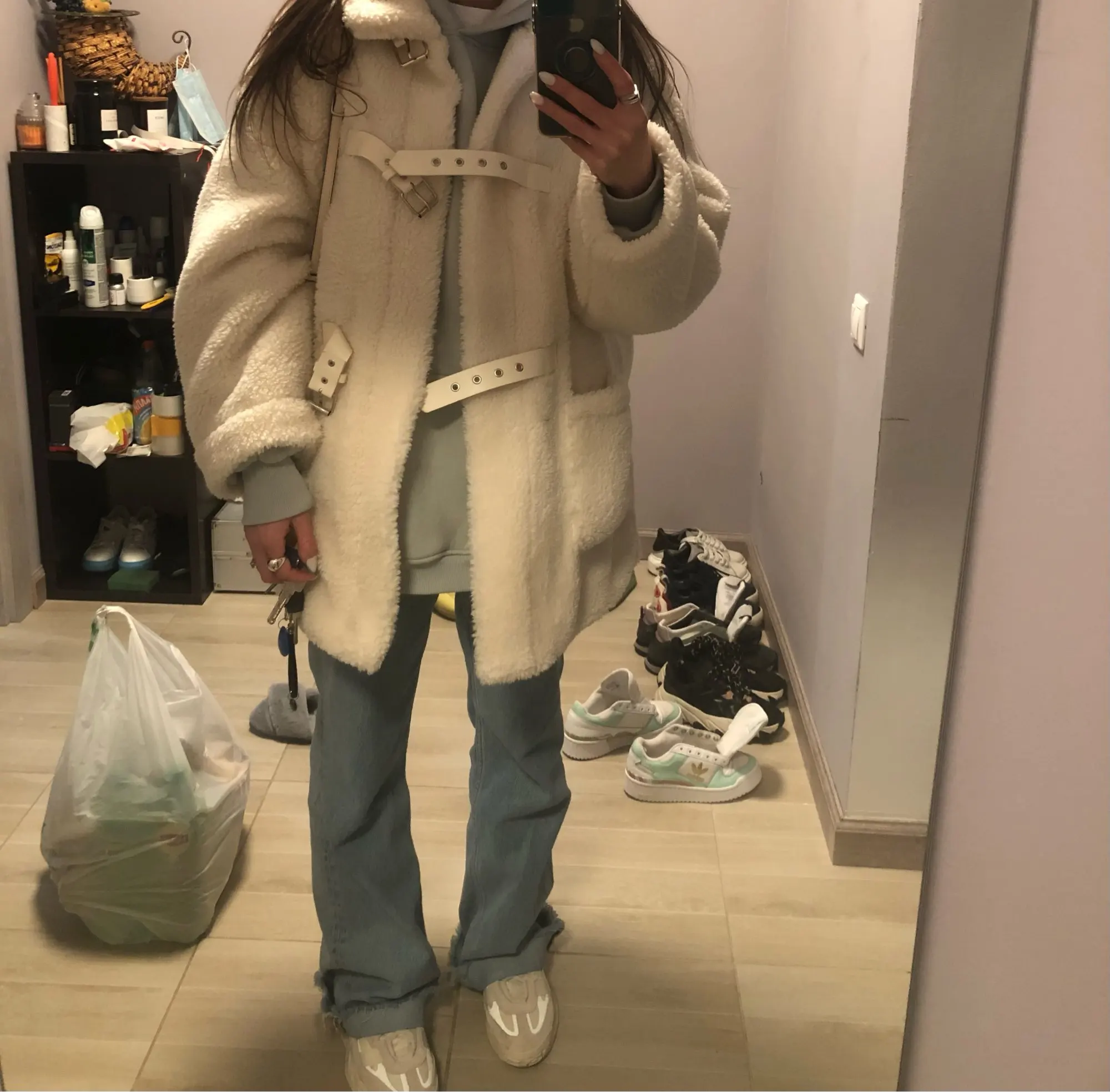 Bella philosophy – manteau d'hiver en fausse fourrure d'agneau pour femme, Long, épais et chaud, décontracté, ample, noir